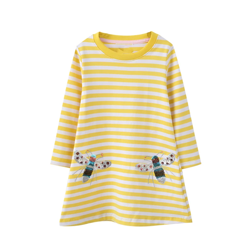 Новинка, дизайнерское платье SAILEROAD для девочек в желтую полоску с пчелами, Осеннее детское платье из 2021 хлопка с длинным рукавом, детское праздничное платье