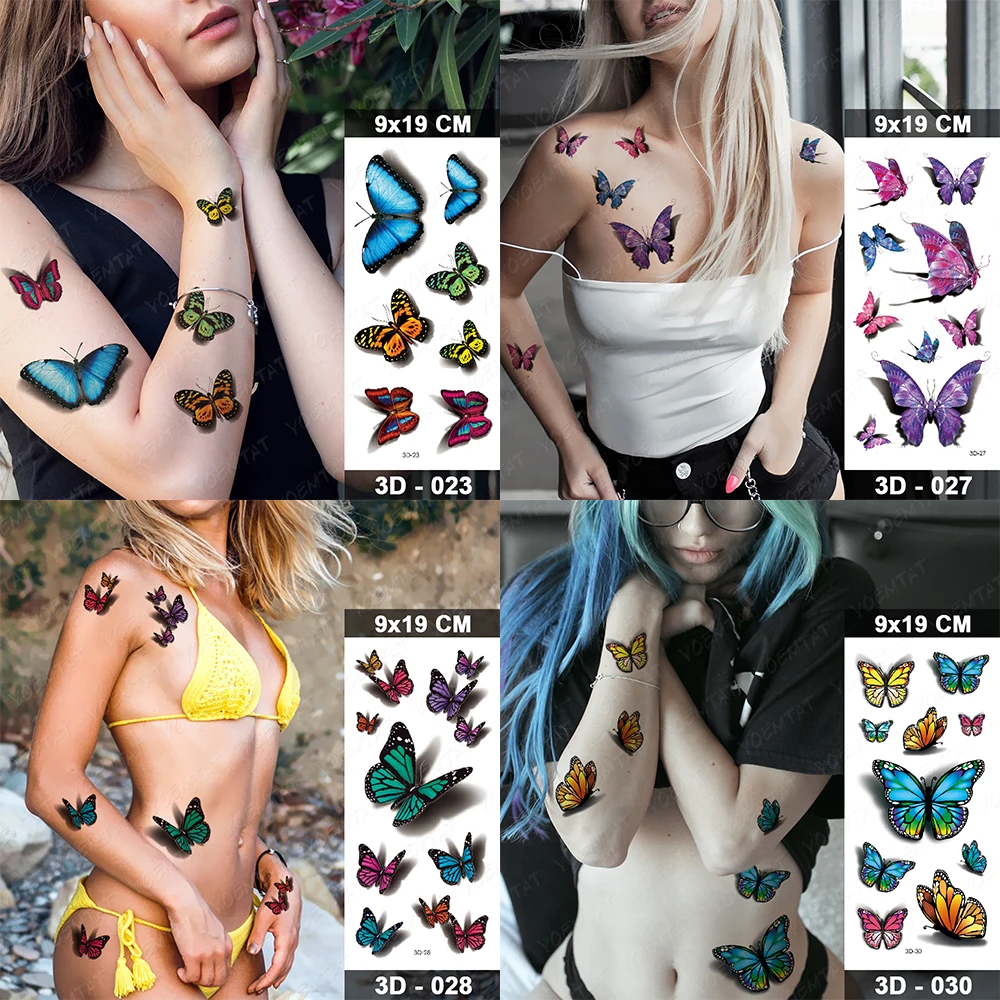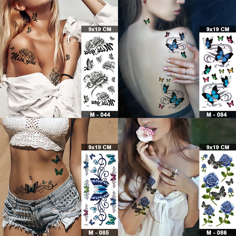 Водонепроницаемый Временные татуировки стикер Черная Бабочка Тотем поддельный тату флэш Реалистичная Роза тату боди-арт 3d для девушек женщин