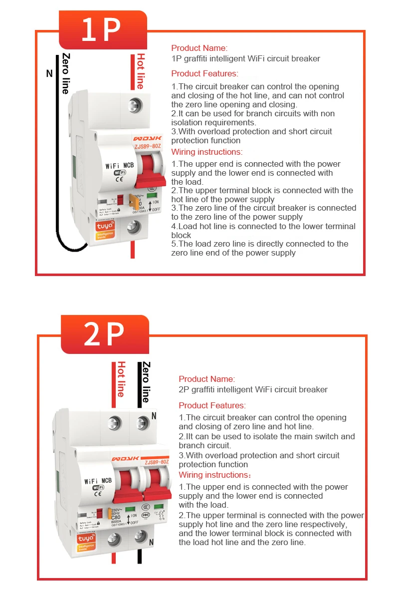 Умный автоматический выключатель с Wi-Fi, дистанционное управление автоматическим выключателем для защиты от перегрузки и короткого замыкания 1P-4P