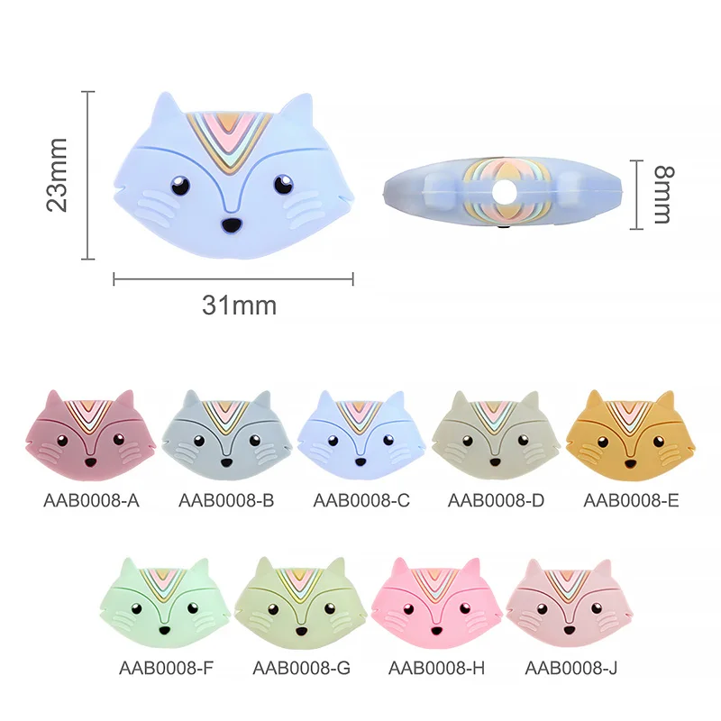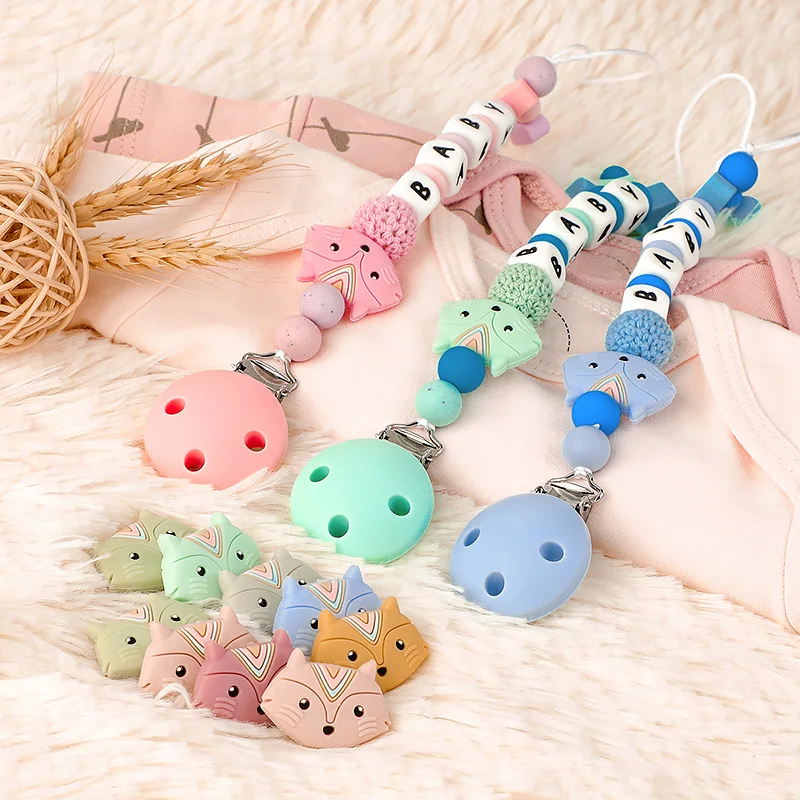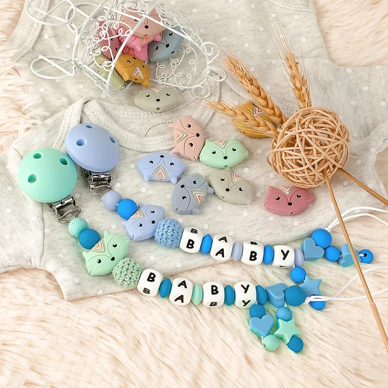 TYRY.HU 20 шт. силиконовые бусины с мультяшной лисой, сделай сам, детские соски, цепочка, подвеска, BPA бесплатно, экологически чистые игрушки для прорезывания зубов