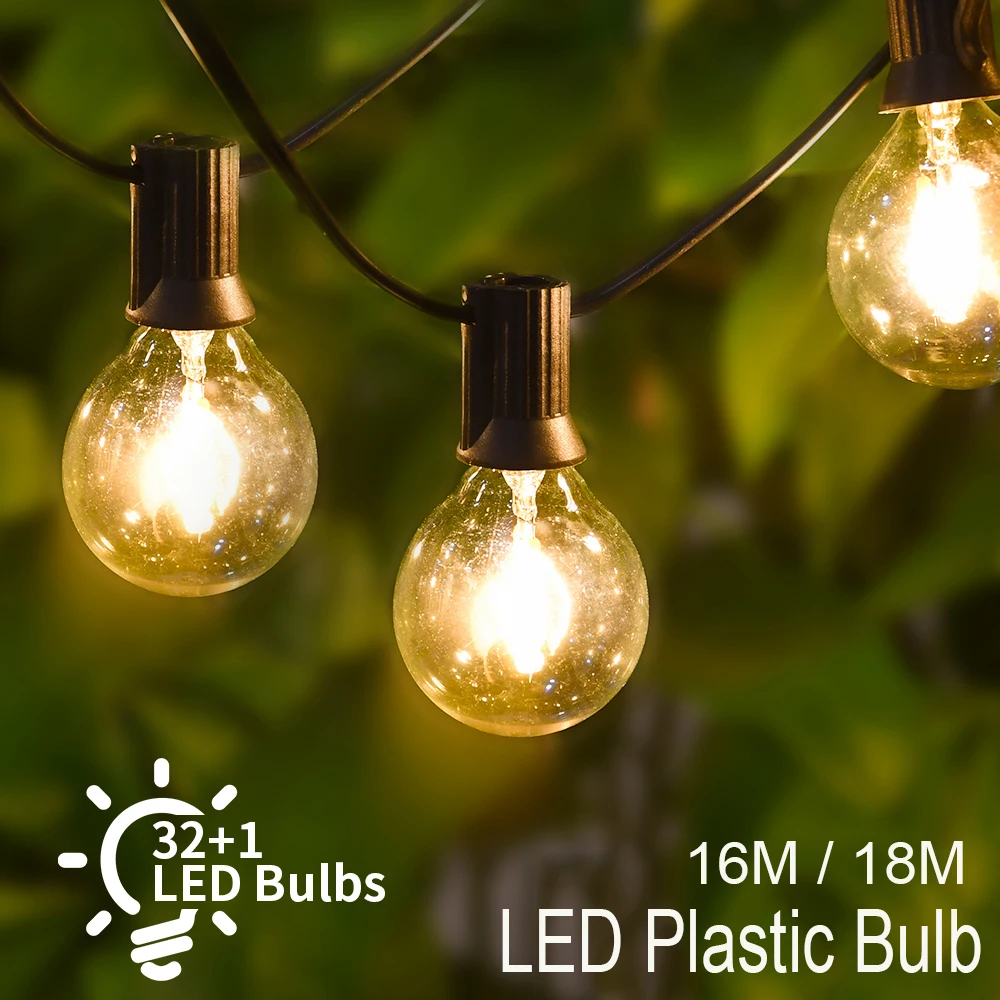 Уличная гирлянда 9 м, 18 м, сказосветильник рлянда s, пластиковая G40 светодиодная лампа, гирсветильник да для патио, Праздничный Рождественский свет, Свадебный декор