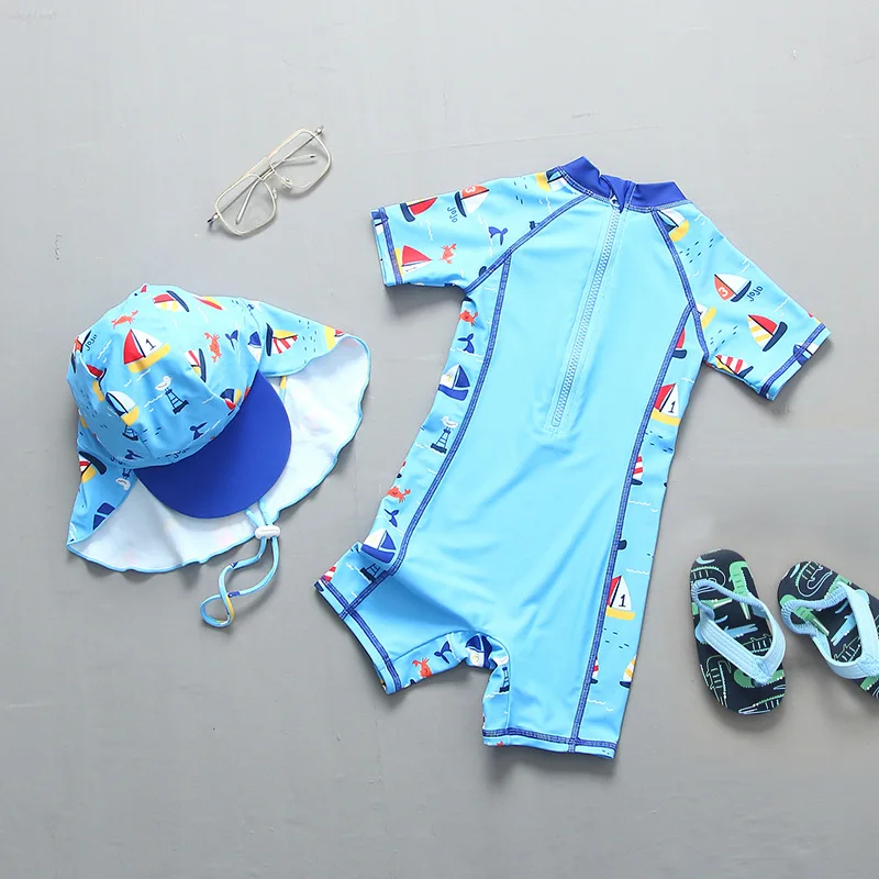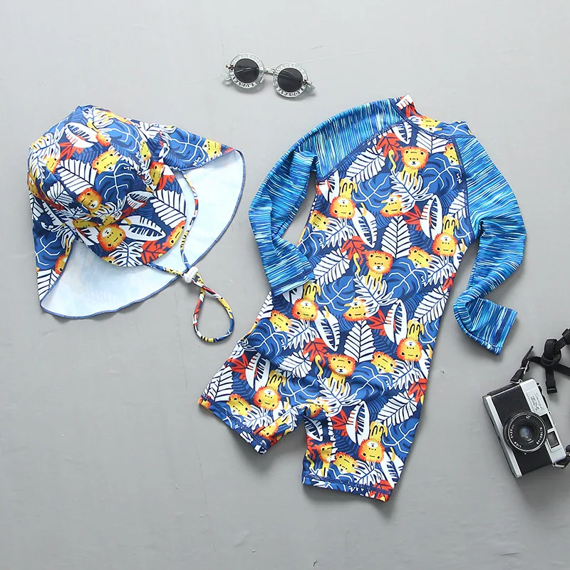 Купальник для мальчиков, слитный купальный костюм с шапочкой, с дли...