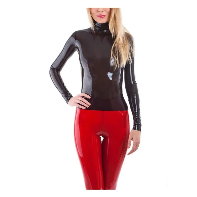 Женский латексный топ с длинными рукавами, латексная рубашка с высокой горловиной, сексуальный латексный резиновый костюм