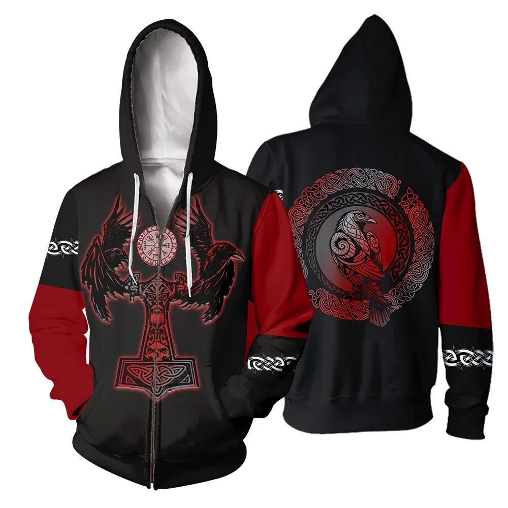 Прямая поставка, 2021, модные мужские толстовки, толстовка с 3d-рисунком викингов и татуировками, толстовка на молнии, уличная одежда в стиле Харадзюку, WO548