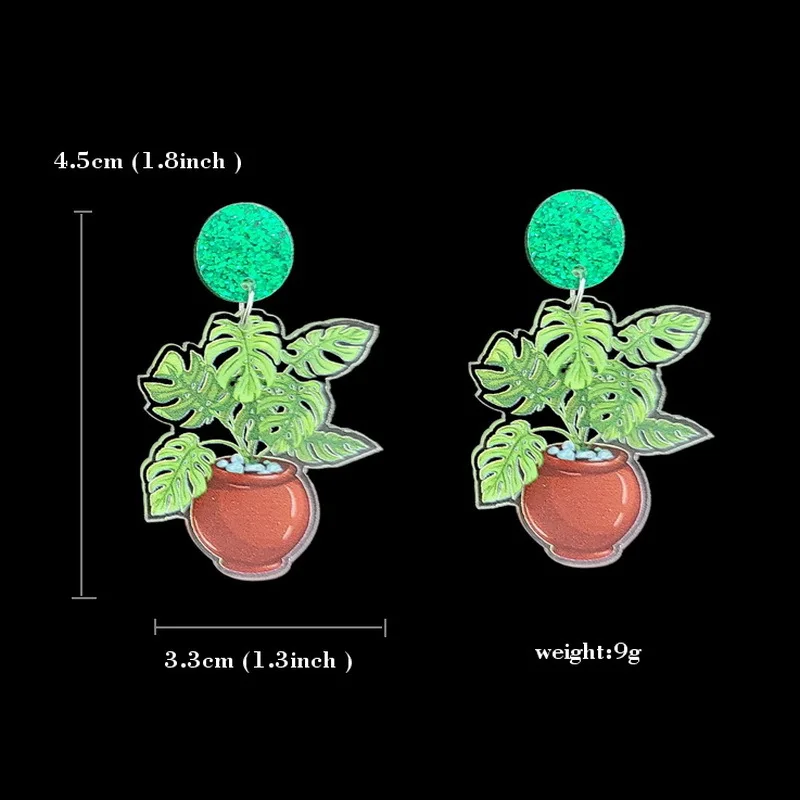 Акриловые серьги с принтом садового растения, листья черепахи, зеленые в горшке, хлорофилл, ювелирные изделия, модные серьги для женщин, вечеринки 2021