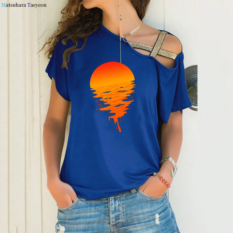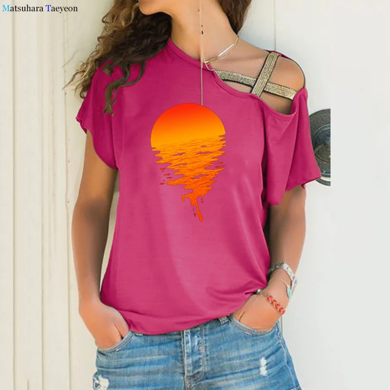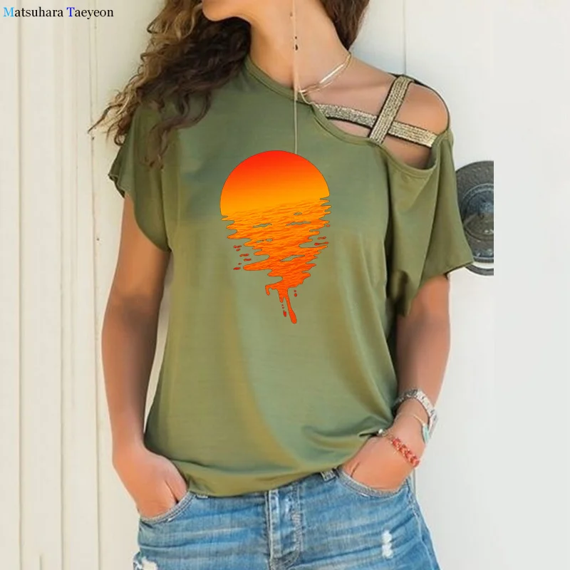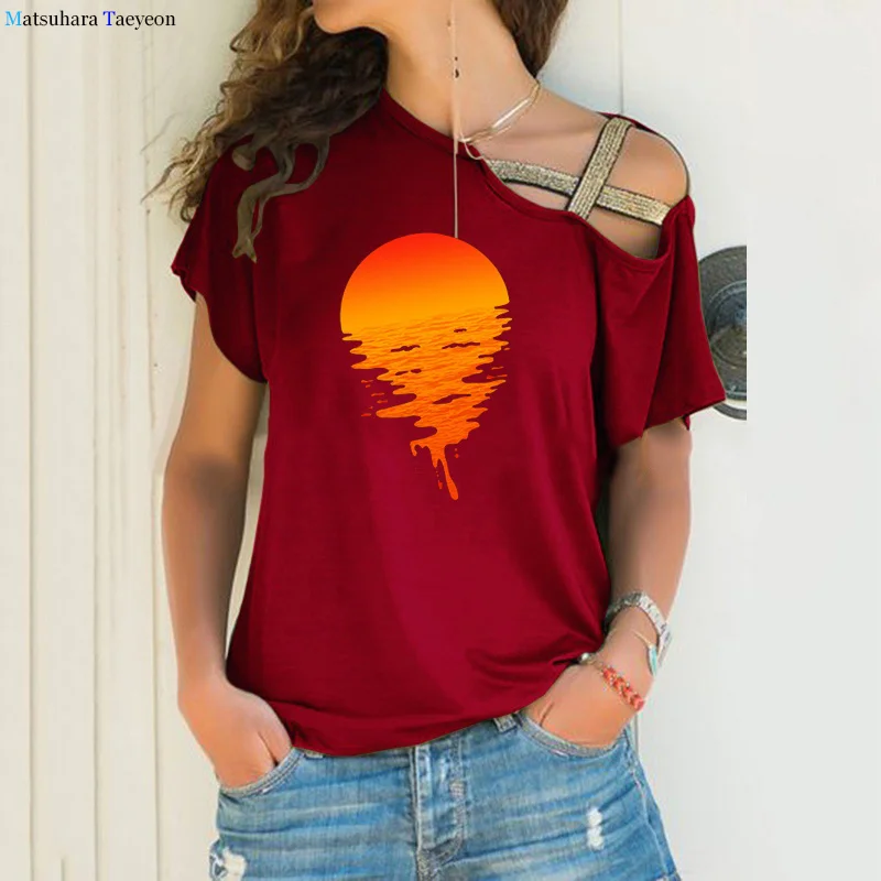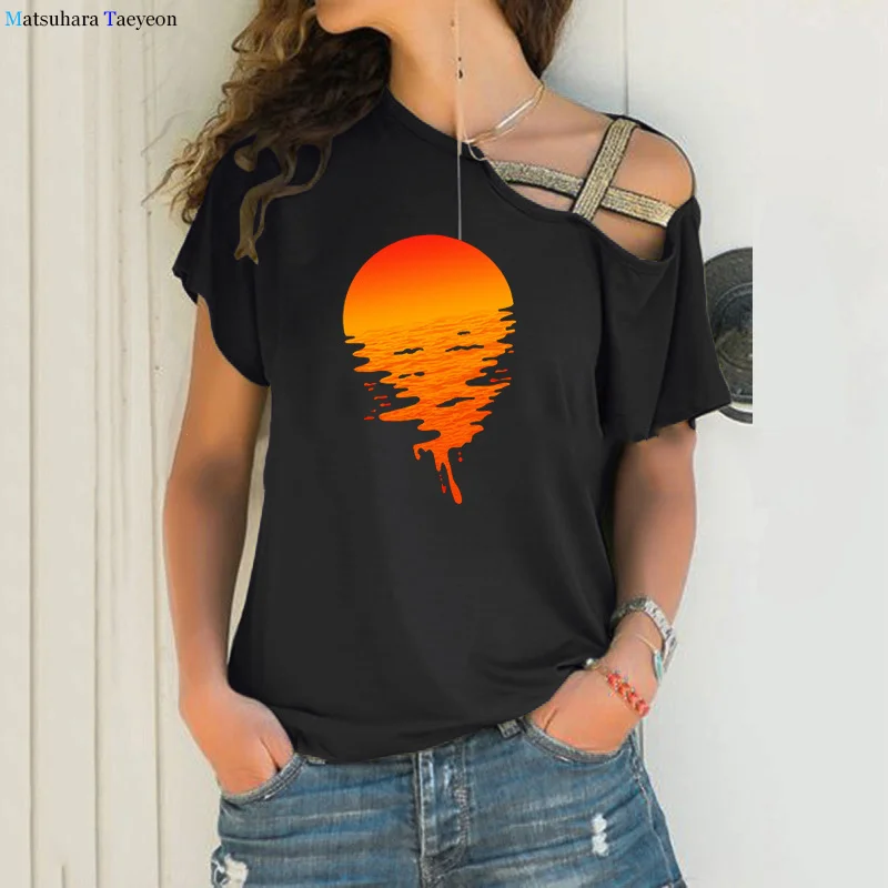 Женская летняя футболка с коротким рукавом и принтом солнце
