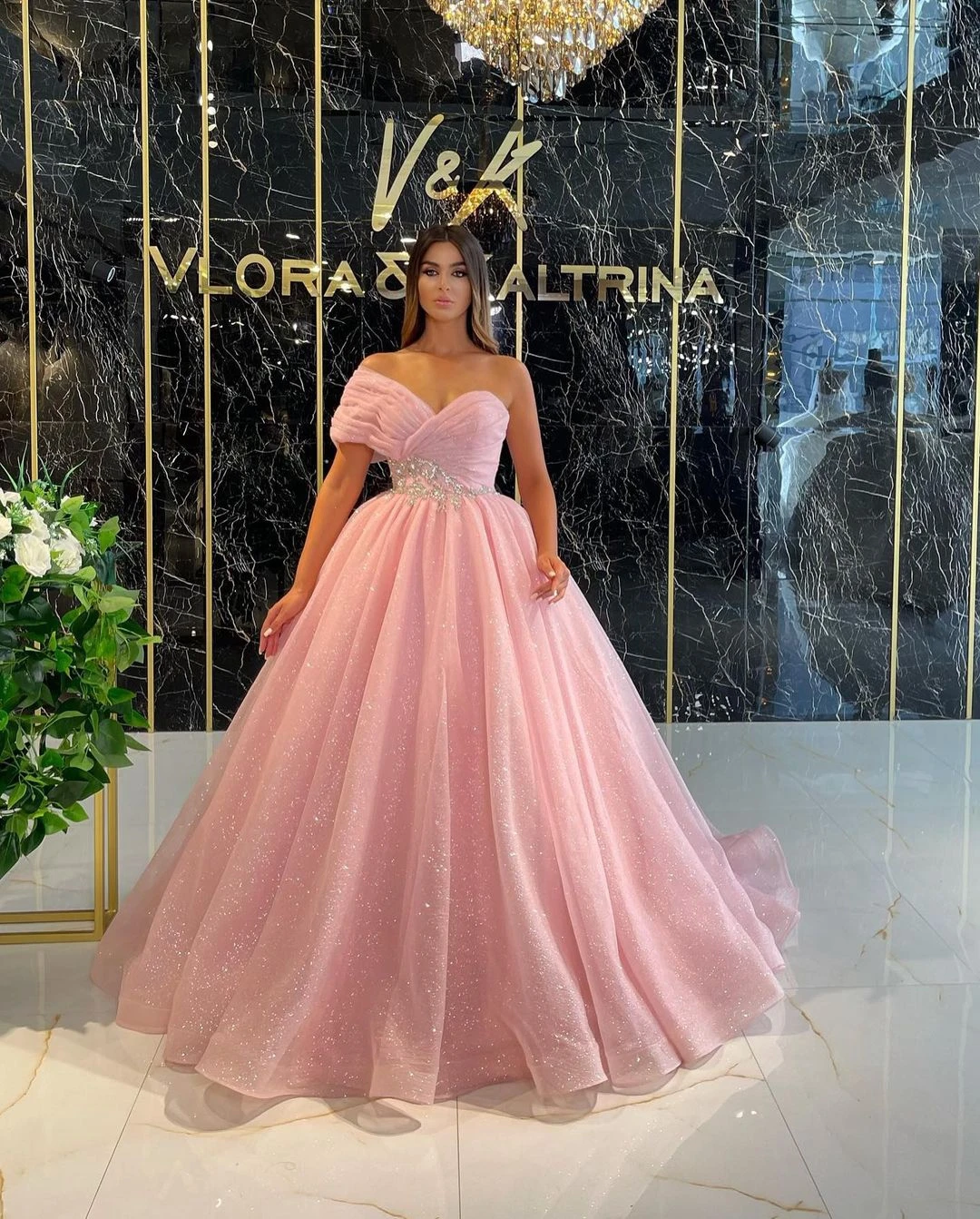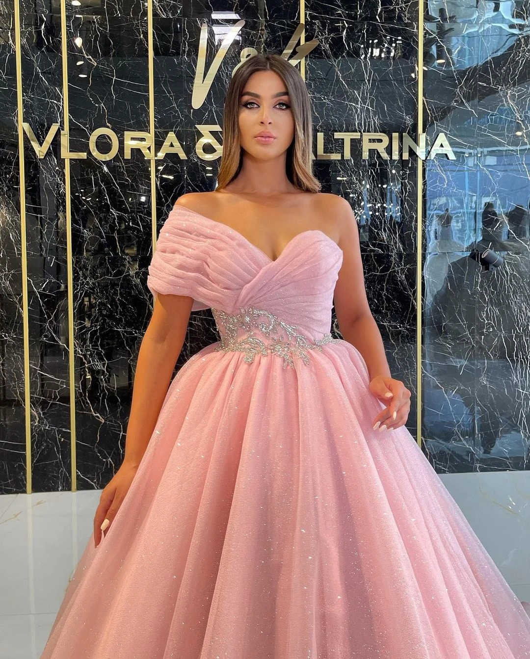 Блестящее элегантное розовое вечернее платье с одним открытым плечом, ТРАПЕЦИЕВИДНОЕ ПЛАТЬЕ до пола для выпускного вечера, официальное бальное платье на заказ
