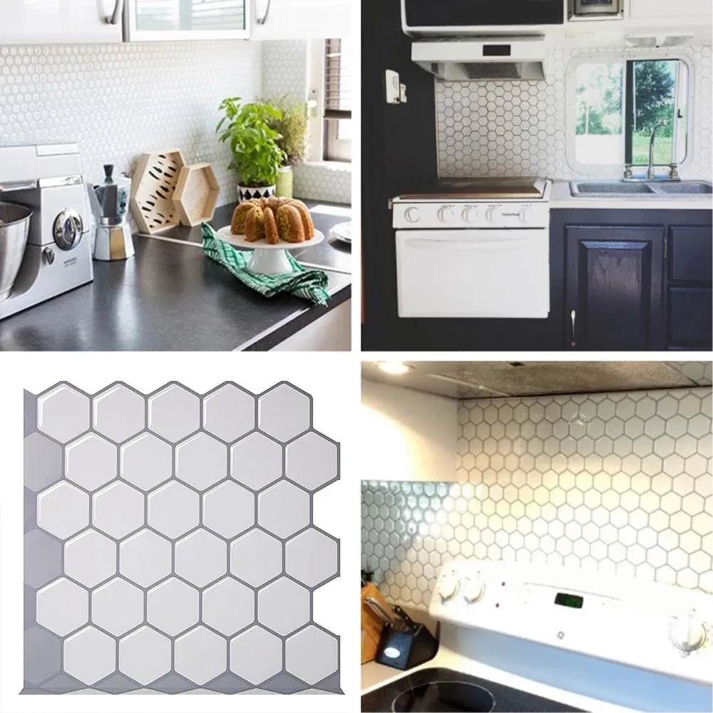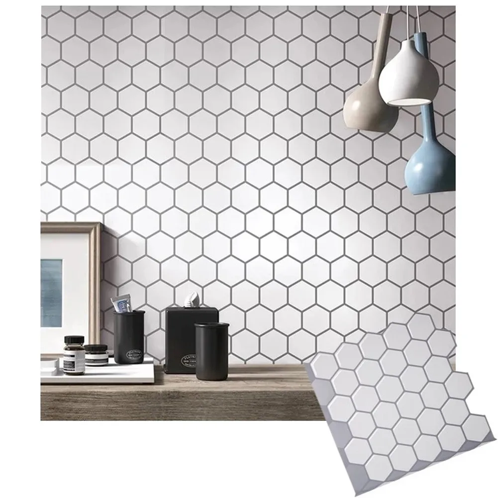 1 шт. Настенная Наклейка 30,5 см X 30,5 см Шестигранная белая виниловая настенная наклейка Se-lf клейкая 3D самоклеящаяся настенная плитка