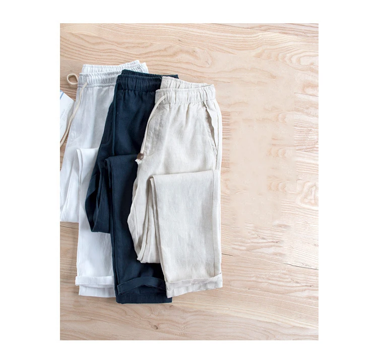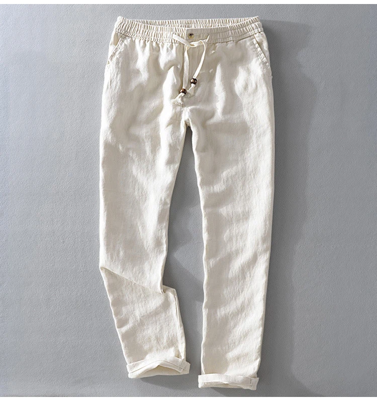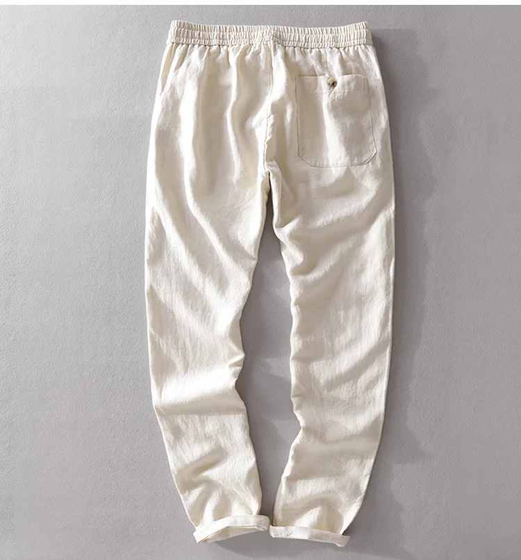 7409 мужские высококачественные льняные брюки, дышащие удобные Молодежные Тонкие штаны с эластичной резинкой на талии, модные повседневные мужские брюки LFFMHMT