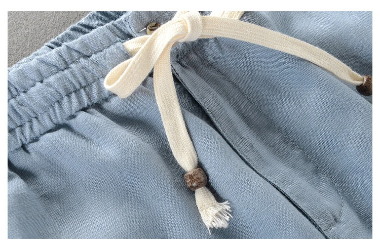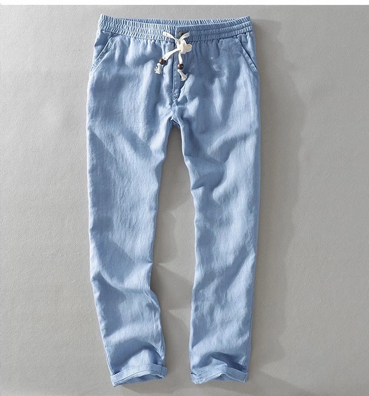 Брюки мужские из льна, дышащие удобные Молодежные тонкие модные повседневные штаны с эластичным поясом на шнурке, 7409