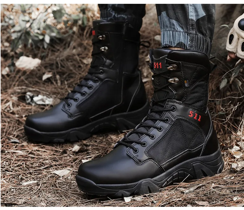 Мужские кожаные армейские ботинки, водонепроницаемые износостойкие ...