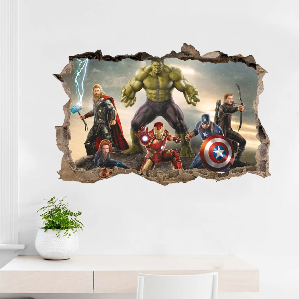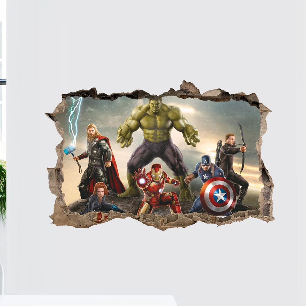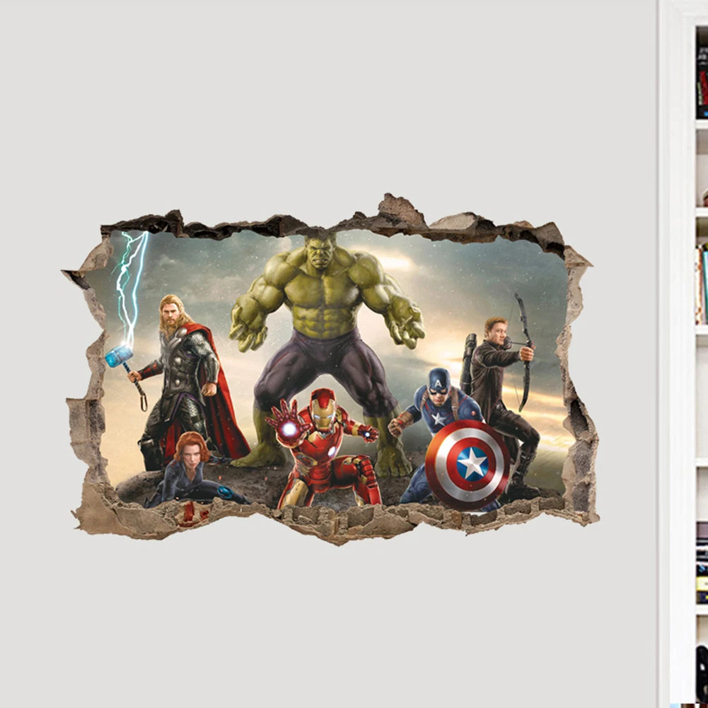 Дисней 3D эффект Мстители настенные наклейки для детской комнаты декор мультфильм кино гостиная настенные наклейки Diy Искусство ПВХ росписи постер