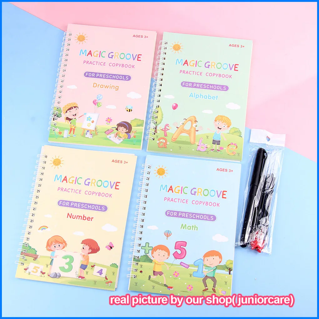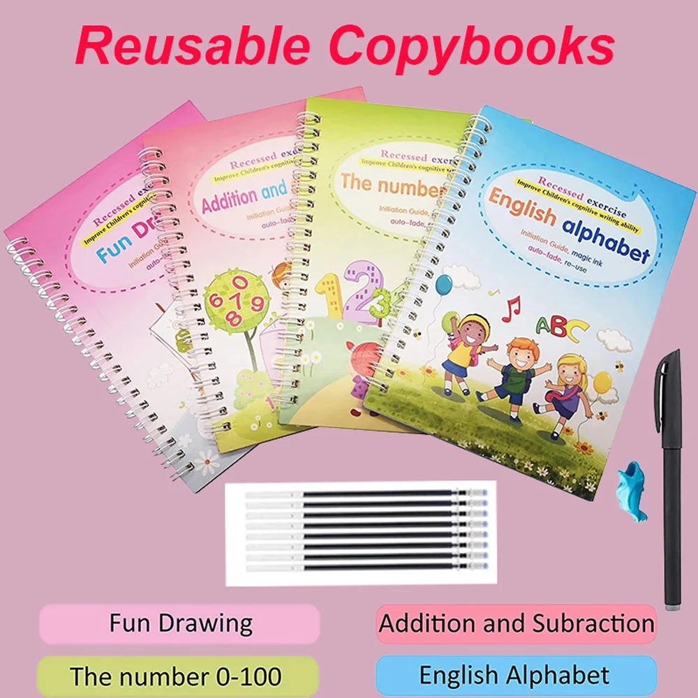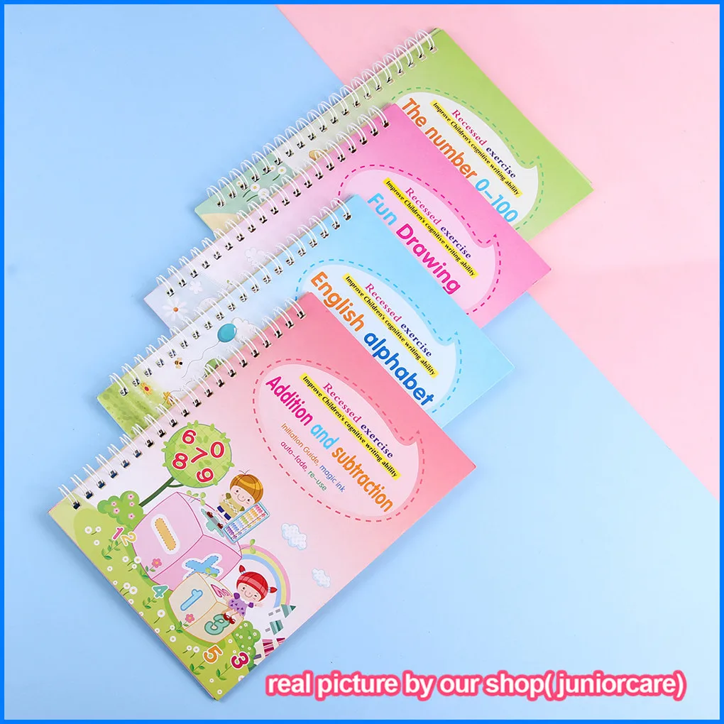 4 книги Волшебная книга для практики многоразовая Бесплатная вытирая детская игрушка стикер для письма английская книга для каллиграфии Монтессори игрушки