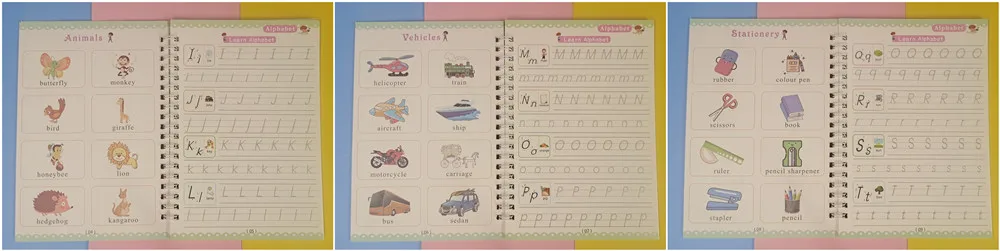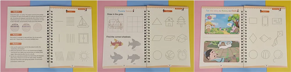 С трехмерным дизайном паза, эти книги для отслеживания почерка могут стандартизировать стандартный формат письма, весело, но практично для детей, чтобы использовать в повседневной жизни, повышают интерес: эти волшебные книги каллиграфии сделаны с забавной графической комбинацией, яркими цветами и милыми формами, которые могут улучшить память и интерес детей, Принесите им много веселья, дети могут многому научиться