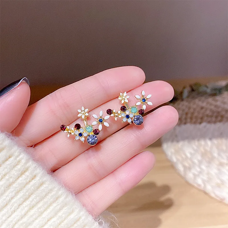 Женские серьги-гвоздики в богемном стиле, с жемчугом и кристаллами