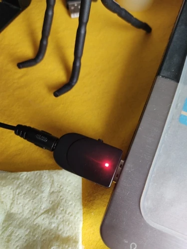 Вставьте питание от usb, красный индикатор горит в режиме передачи, красный светильник мигает при сопряжении, а красный светильник катор горит всегда после успешного сопряжения.