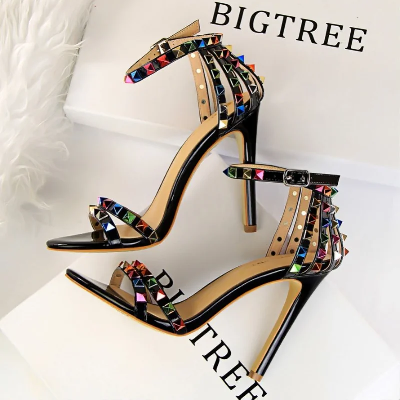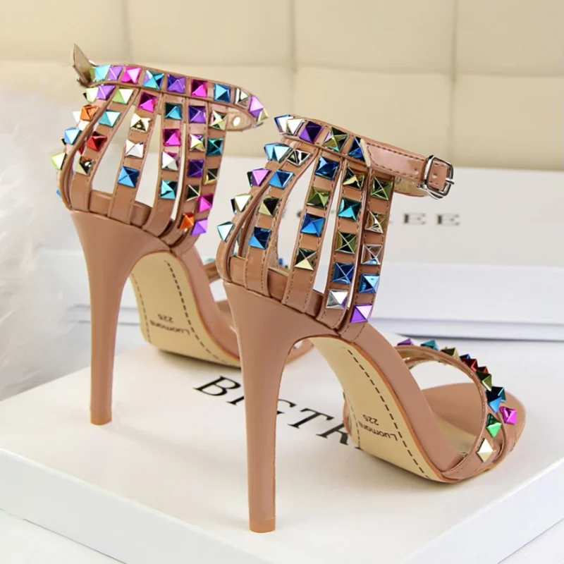 Женские босоножки с заклепками, женские сандалии-гладиаторы на шпил...