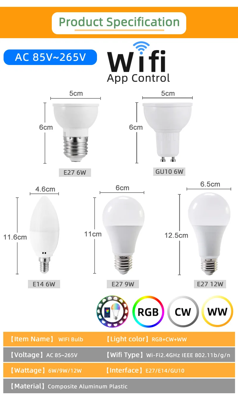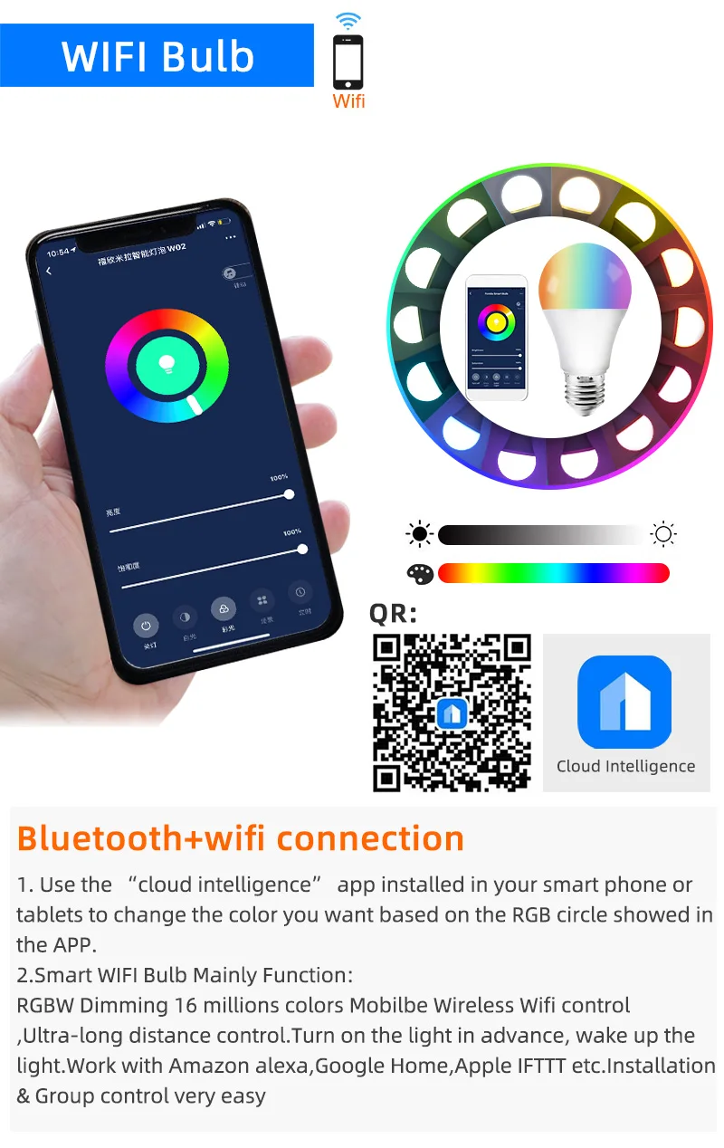Держите подключив этот Wi-Fi умный светильник лампочка с вашей домашней сети (поддерживает только 2,4 ГГц Wi-Fi в настоящее время), вы можете удаленно Контролируйте умный Светильник лампы на вашем смартфоне имитации в тех случаях, когда вы выходите из дома, В доме есть люди. Функция группового управления позволяет управлять более чем одной умной лампой-светильник одновременно для настройки сцены.