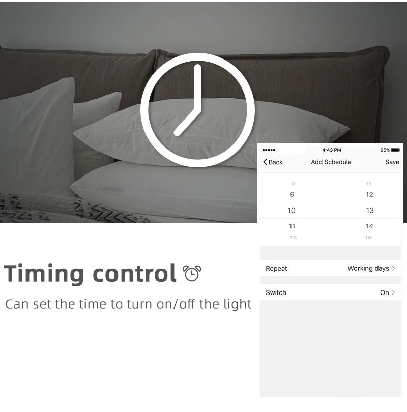 Никогда не Возвращайтесь домой в темный дом-используя светильник в приложении и получайте теплый светильник. Функция таймера позволяет автоматически включать и выключать умный светодиодный светильник.