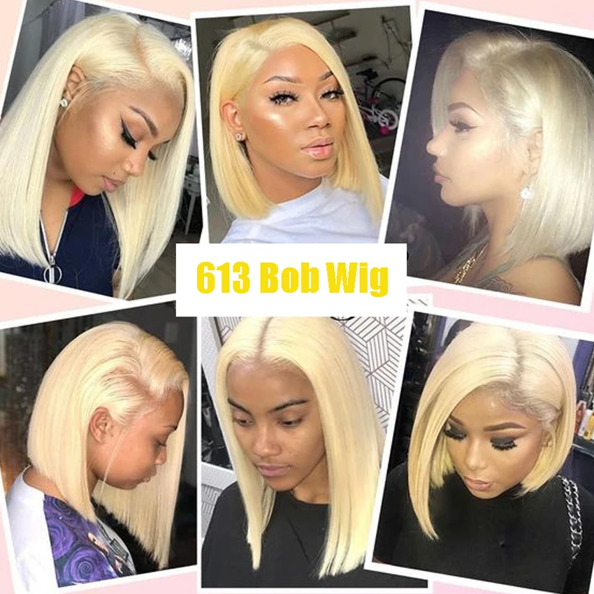 613 парики блонд Боб из человеческих волос на сетке, парики 4x4 на ...