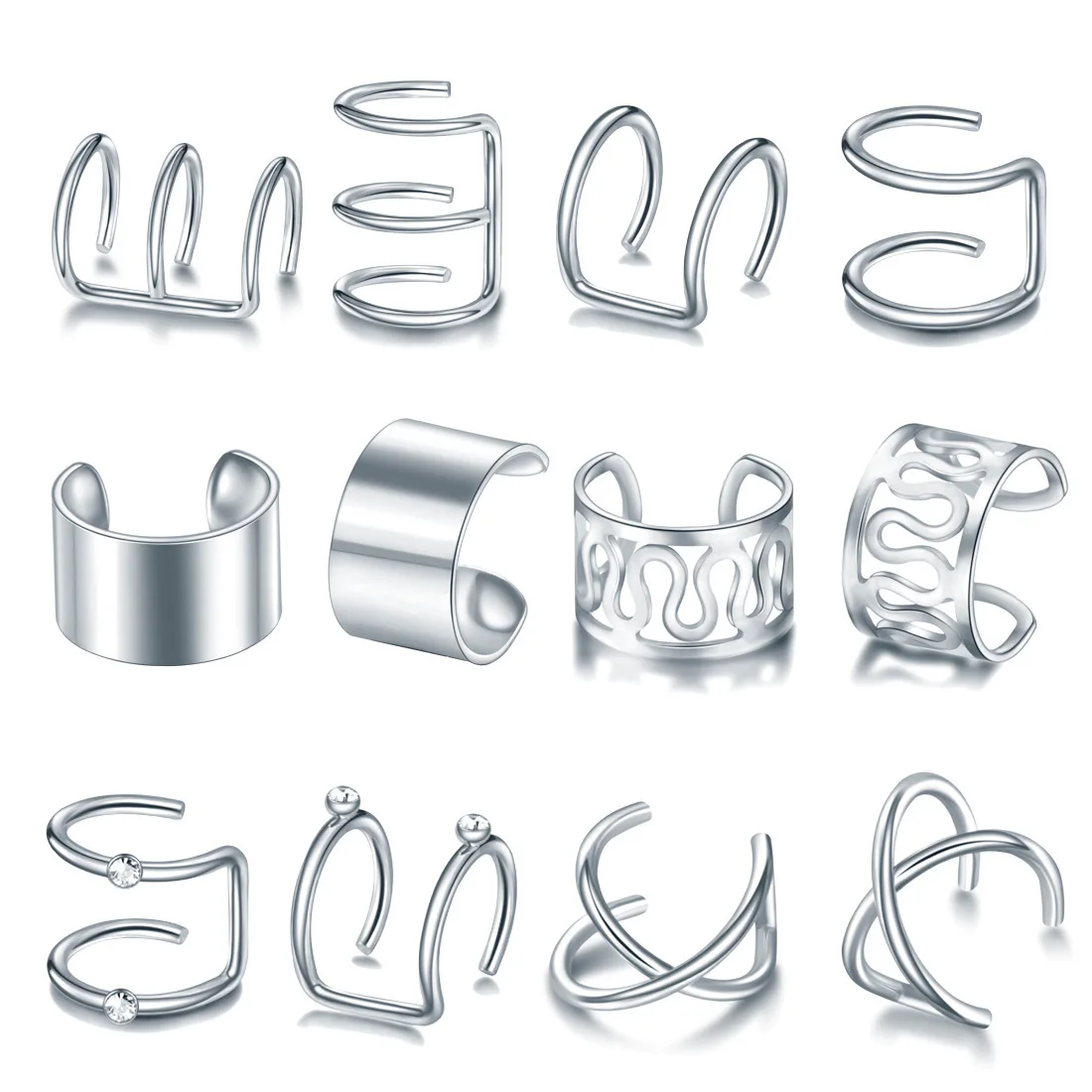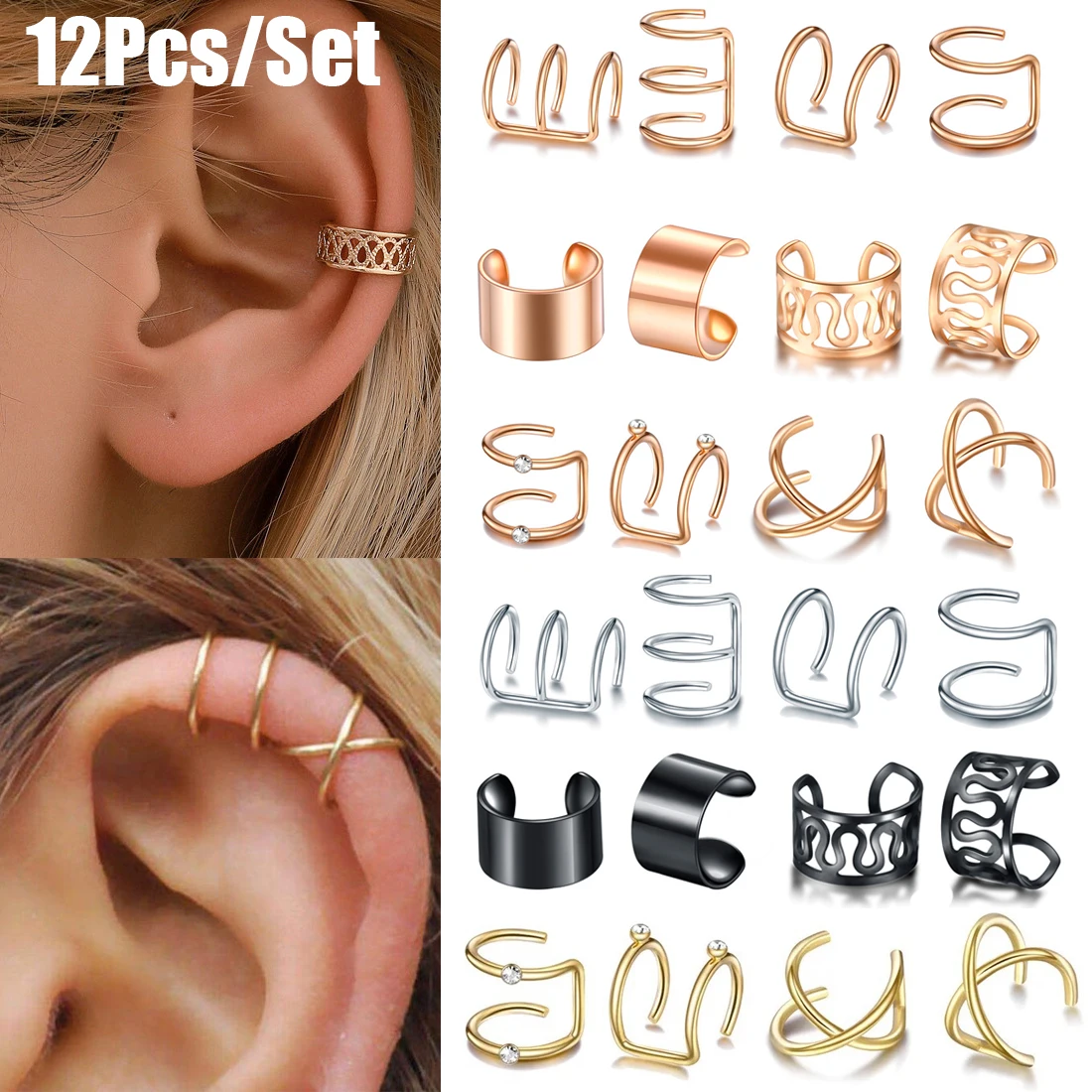 12 шт. Кафф для ушей золотые листья не пирсинг клипсы для ушей Поддельные Хрящевые серьги клипсы для женщин мужчин оптовая продажа ювелирные изделия подарки