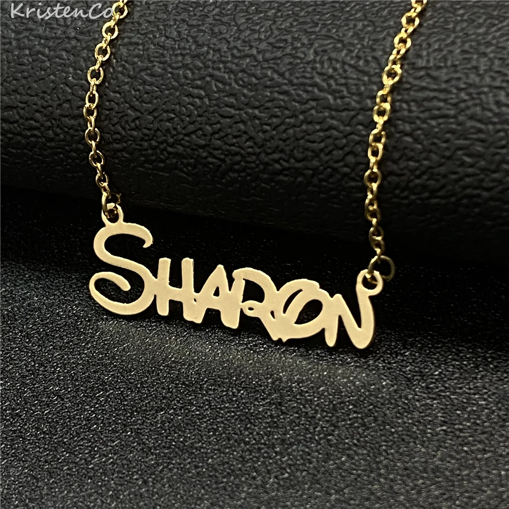 Ожерелье с именем KristenCo на заказ, персонализированное ожерелье из нержавеющей стали с курсивом, именная табличка, ювелирные изделия с индивидуальным именем для женщин, ювелирные изделия