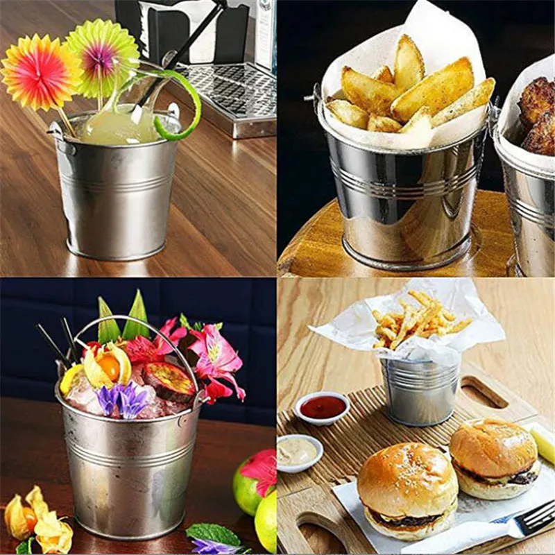 Мини-ведро для льда, ведро для хранения картофеля фри, контейнер для закусок, органайзер, креативное маленькое ведро с ручками для бара, домашней вечеринки