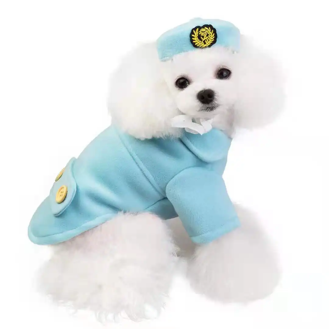 Одежда для собак, униформа стюардессы для Тедди, французский бульдог, одежда для домашних животных, теплая ветровка для собак, шерстяное пальто на осень и зиму