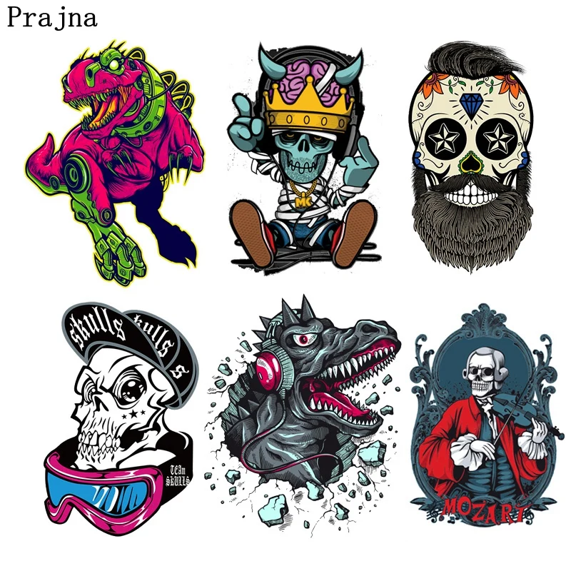 Prajna панк динозавр термо теплопередача для одежды Череп Байкер аппликация Железный На переноске для одежды наклейки можно носить