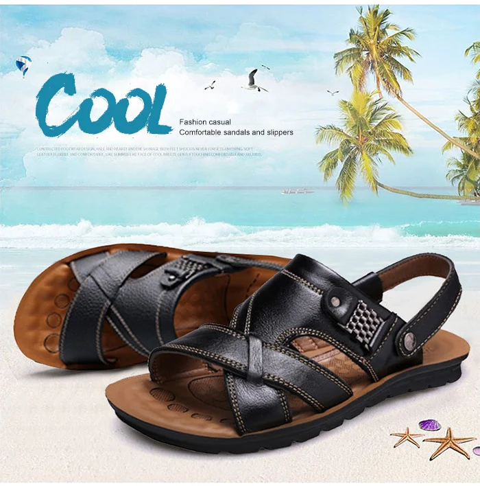 Мужские сандалии, кожаная пляжная обувь, сандалии, Тапочки, мужские...