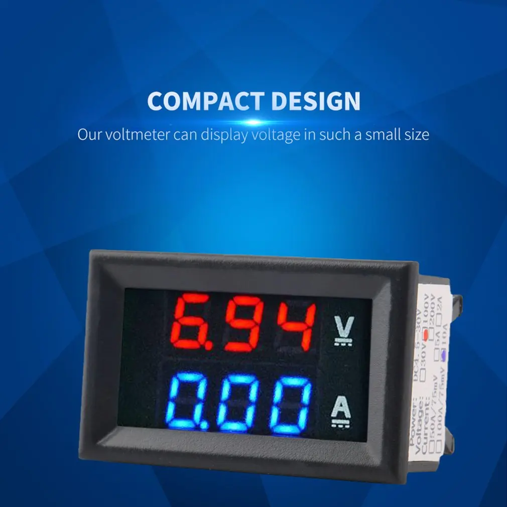 Цифровой светодиодный вольтметр Амперметр постоянного тока 100 в 10 А синий + красный двойной цветной дисплей Вольтметр измерительный усилитель двойное напряжение тока мультиметр