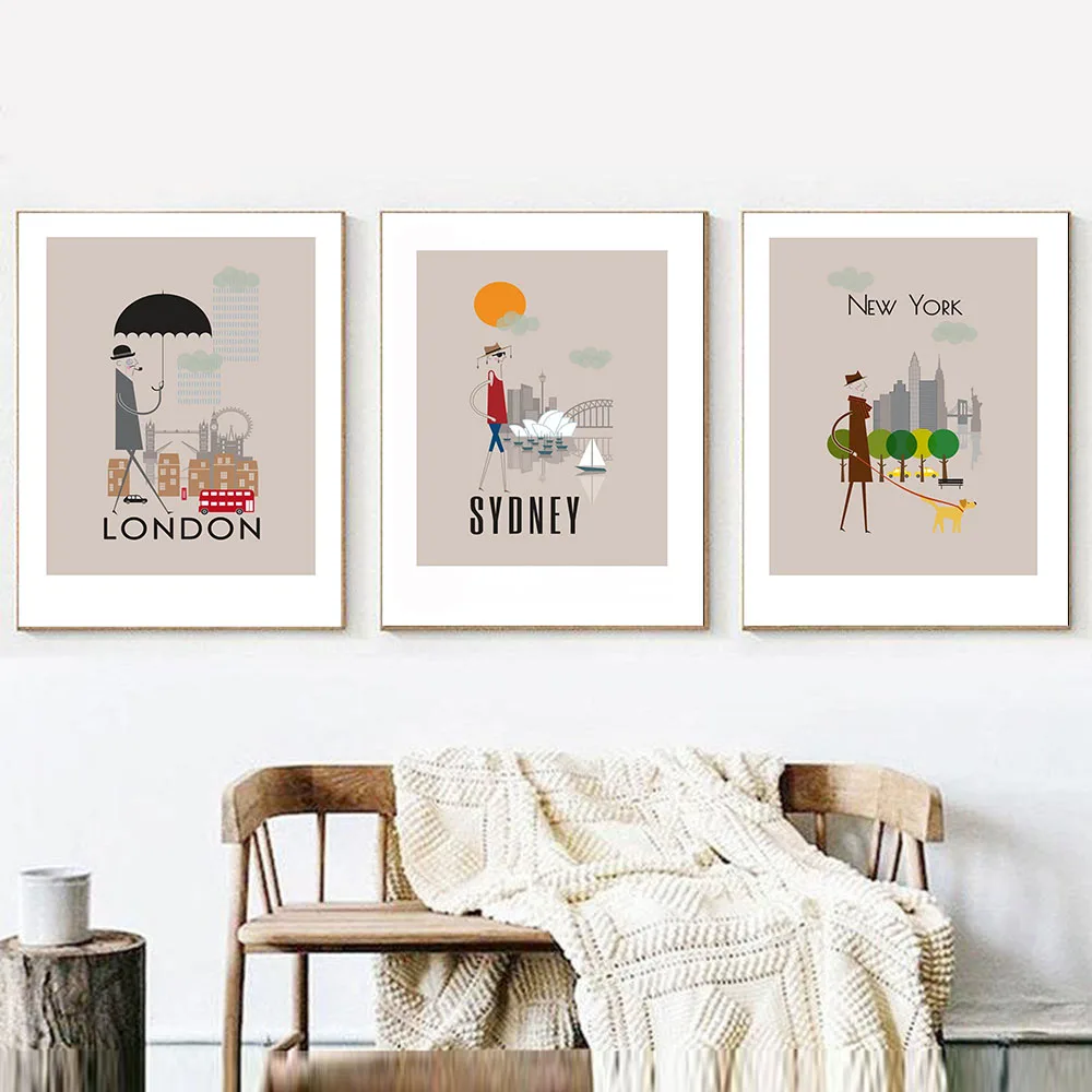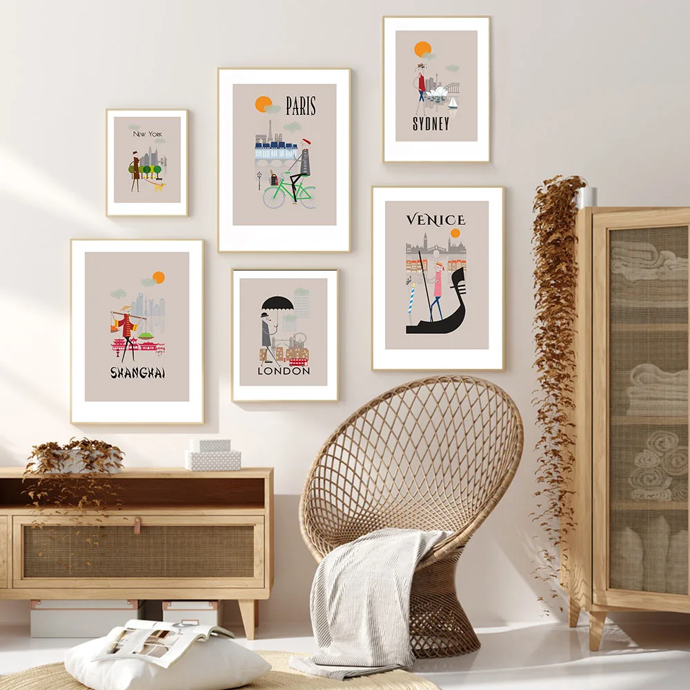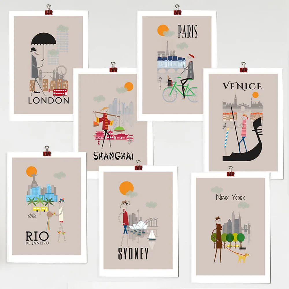 Плакаты в стиле ретро для путешествий города Лондон Париж Нью-Йорк Сидней Венеция Шанхай Рио Картина на холсте пейзаж настенные картины Домашний декор