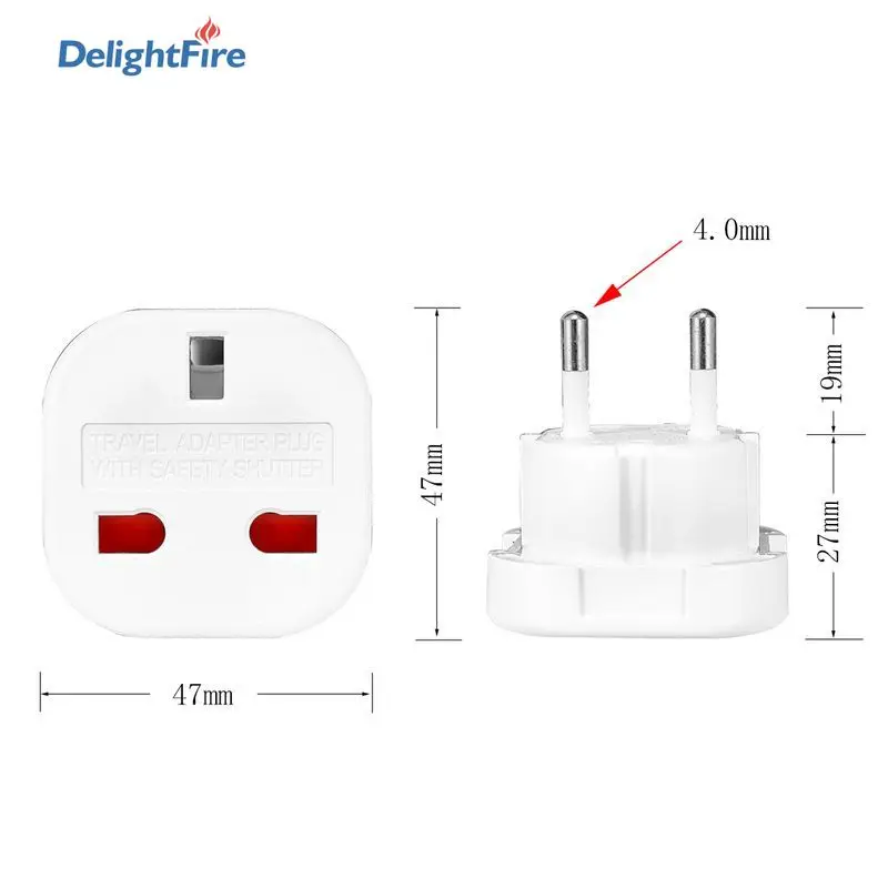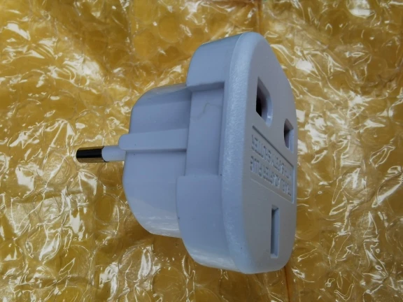Доставка около месяца в Москву. В пупырчатом пакетике, ничего не отломали по дороге. Переходник хрошо подошел к британской вилке, вставляется туго, не болтается . А вот штыри тонкие, как у слабо точных кабелей, входят в евро розетку легко, но не очень плотно. Зато можно воткнуть в старые советские розетки. В целом, нормальный адаптер за небольшие деньги. Спасибо продавцу!