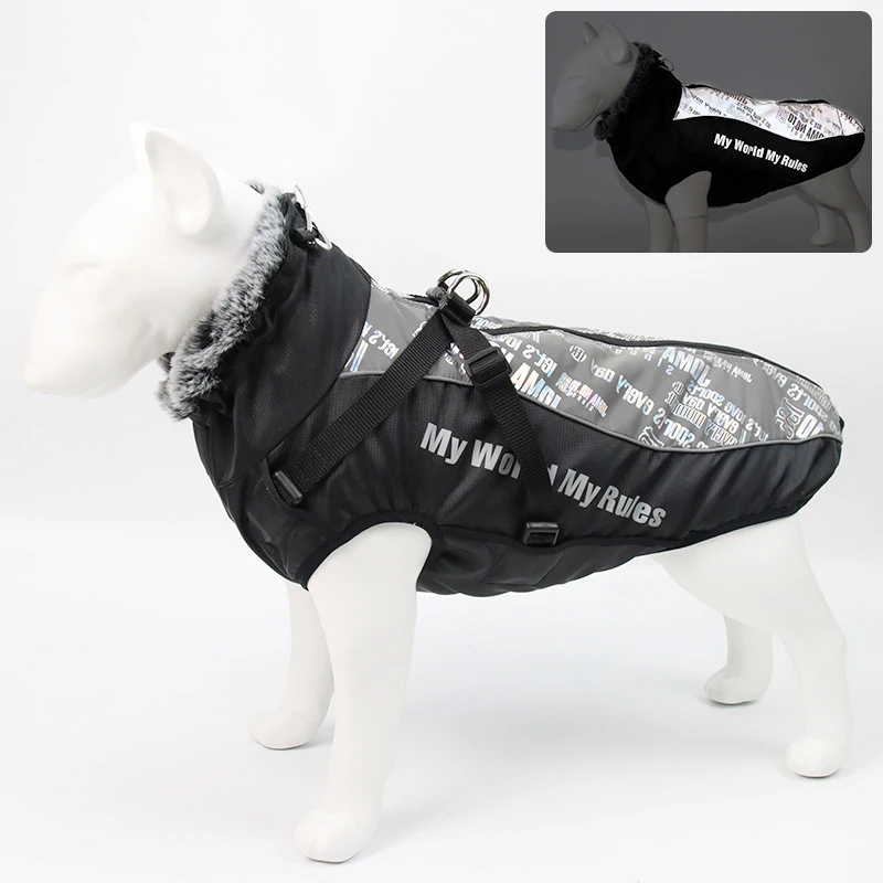 Одежда для собак, светоотражающая водонепроницаемая куртка с меховым воротником, зимний теплый флисовый жилет, утепленное пальто, одежда для средних и больших собак