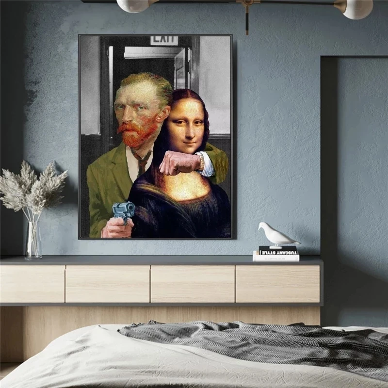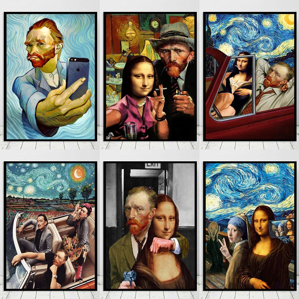 Забавные абстрактные картины на холсте от Van Gogh, Мона Лиза, плакаты и принты, настенные фрески, украшения для дома