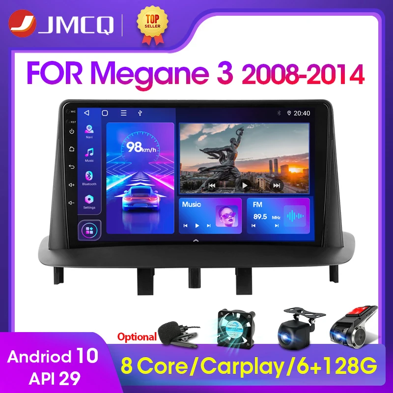 Автомагнитола 2DIN на Android 10, мультимедийный видеоплеер для Renault Megane 3 Fluence 2008-2010, 2011, 2012, 2013, 2014, GPS-навигация, DVD