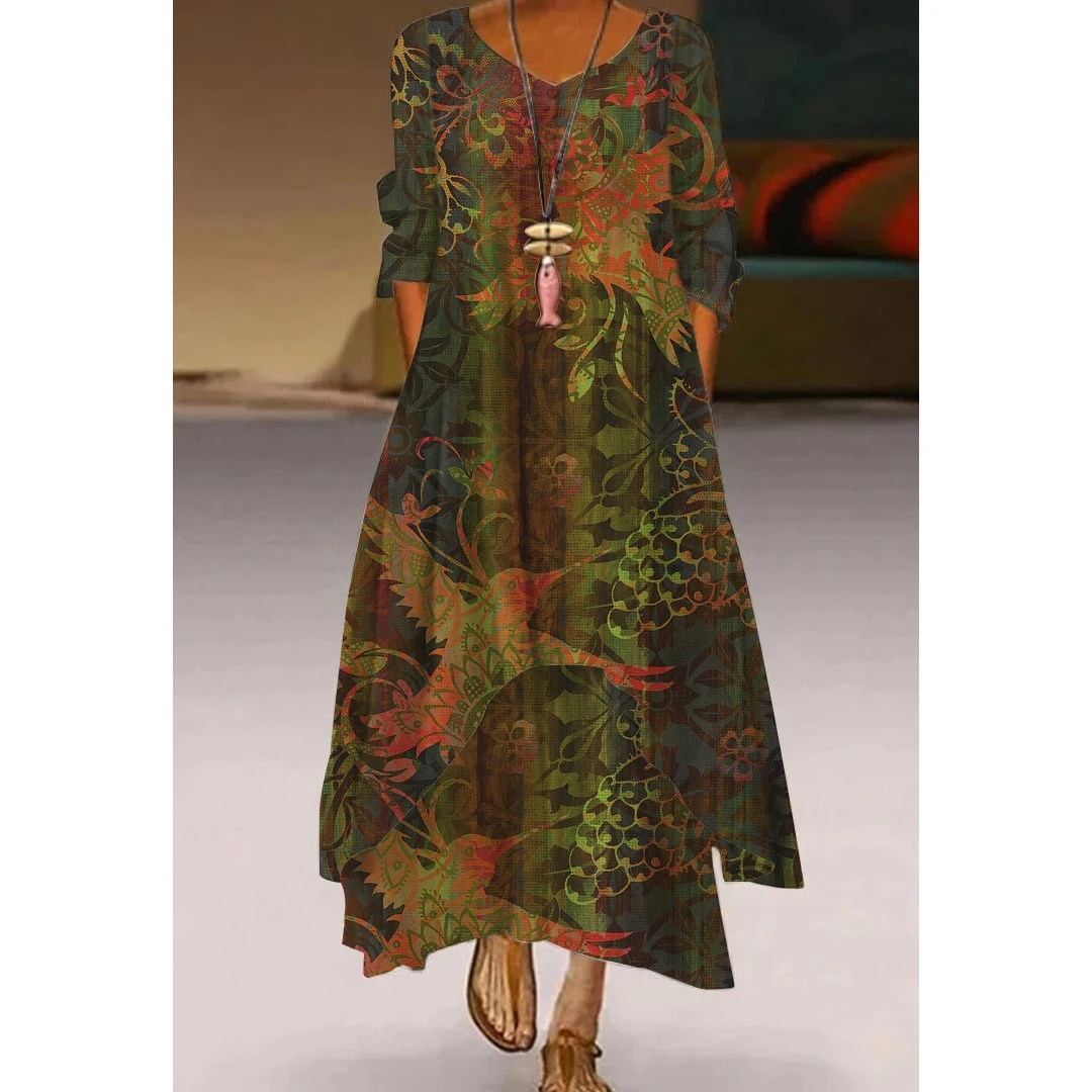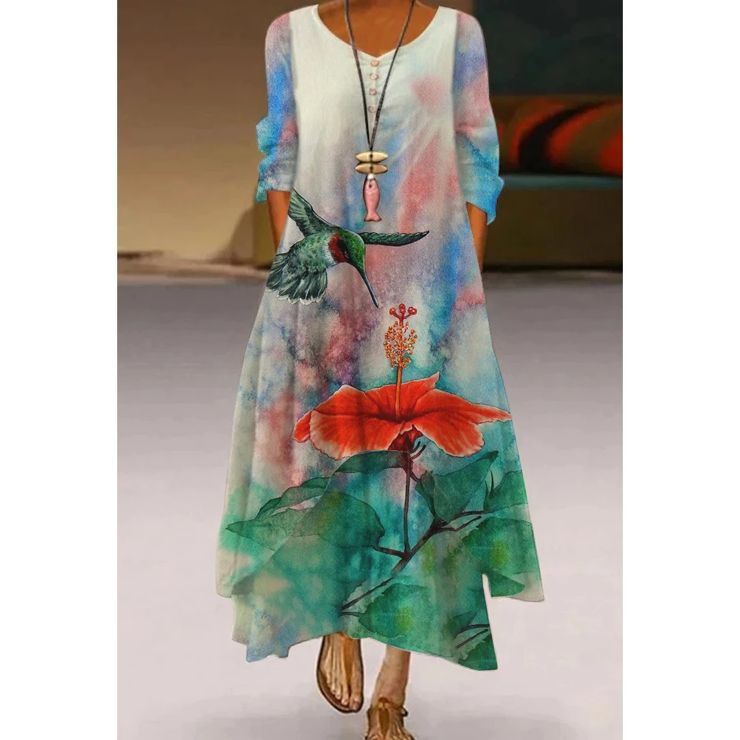 Женское винтажное платье с 3D-принтом, длинное повседневное платье ...