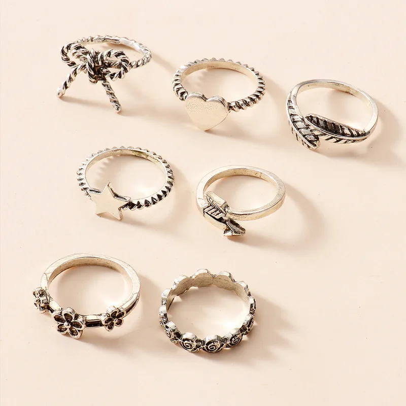 Комплект женских колец в стиле бохо, Винтажные Ювелирные украшения с покрытием из серебра в готическом стиле, с геометрическим дизайном, с изображением солнца, луны, звезды, бабочки, сердца