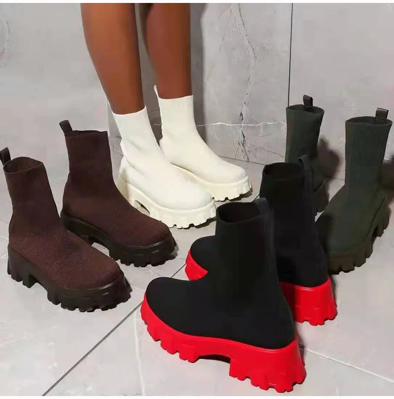 Женские ботинки-носки на платформе, лето-осень 2021, дышащие короткие ботинки, женская удобная обувь на среднем каблуке, размера плюс