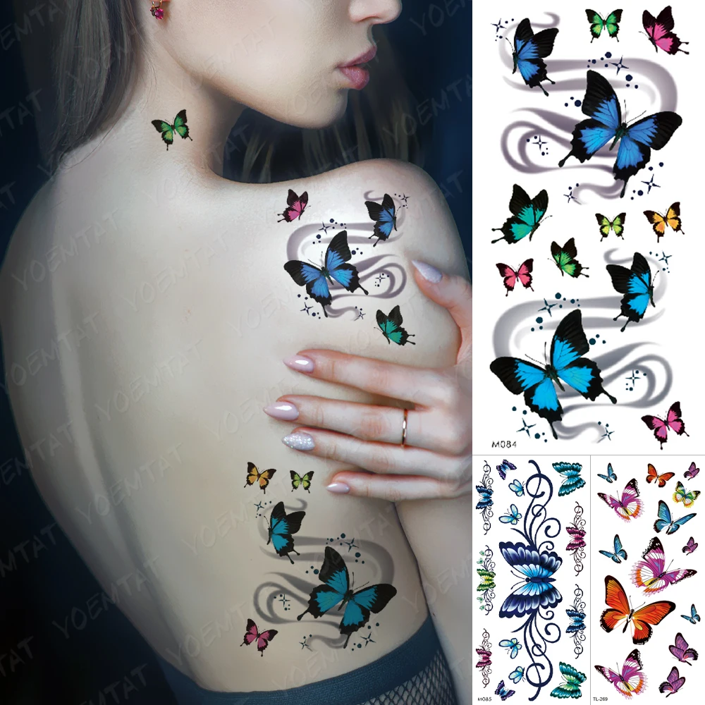 Водонепроницаемая Временная тату-наклейка звездная звезда бабочка поддельные тату флэш черные цветы тату боди-арт Талия 3d для девушек и женщин