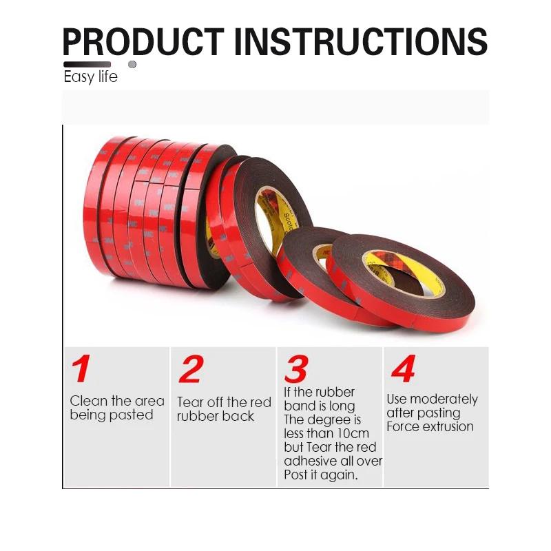 Особенности:-Абсолютно новый и высококачественный.-Предназначен для крепления широкого спектра автомобильных экстерьеров и внутренней отделки, включая боковую молдинги, молдинги, обшивку рок-панелей, колесные вспышки, обшивку бампера и большинство других автомобильных/домашних украшений.-Сильное сцепление с автомобильными подложками.-Устойчивость к погоде и стирке автомобиля.-Удобный. Может использоваться на текстурированных поверхностях, таких как окрашенный цемент или кирпич.-Высокопрочный сердечник поддерживает тонкую, последовательную линию связи.-Легко снимается.-Идеально подходит для использования на светодиодный монтажной ленте в помещении или на открытом воздухе (включая ванную комнату).
