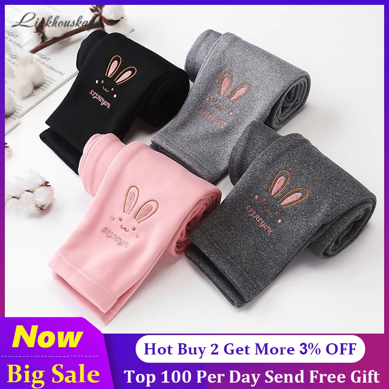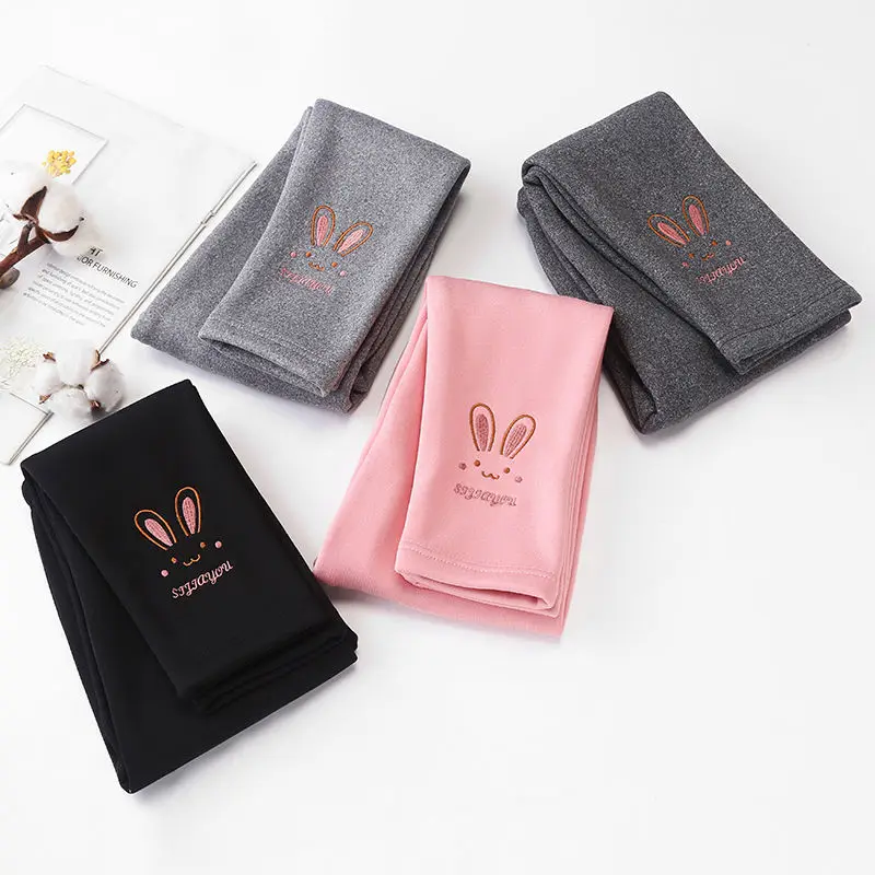 Детские зимние леггинсы с кроликом, на весну и осень, с бархатной п...