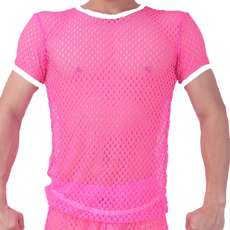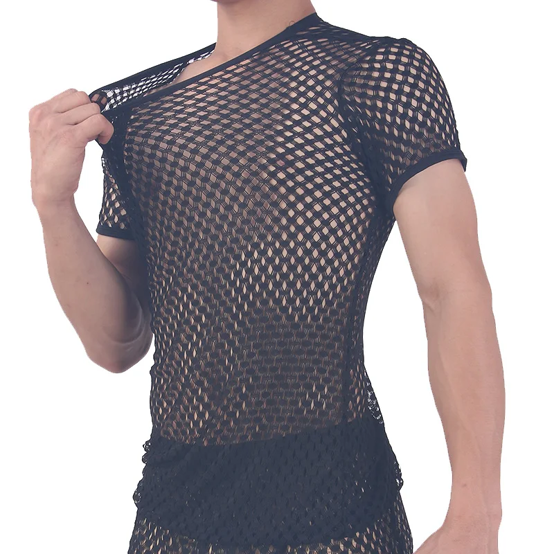 Модная мужская Сетчатая футболка, Прозрачная облегающая пикантная футболка с коротким рукавом, тонкая дышащая одежда для сна, топы
