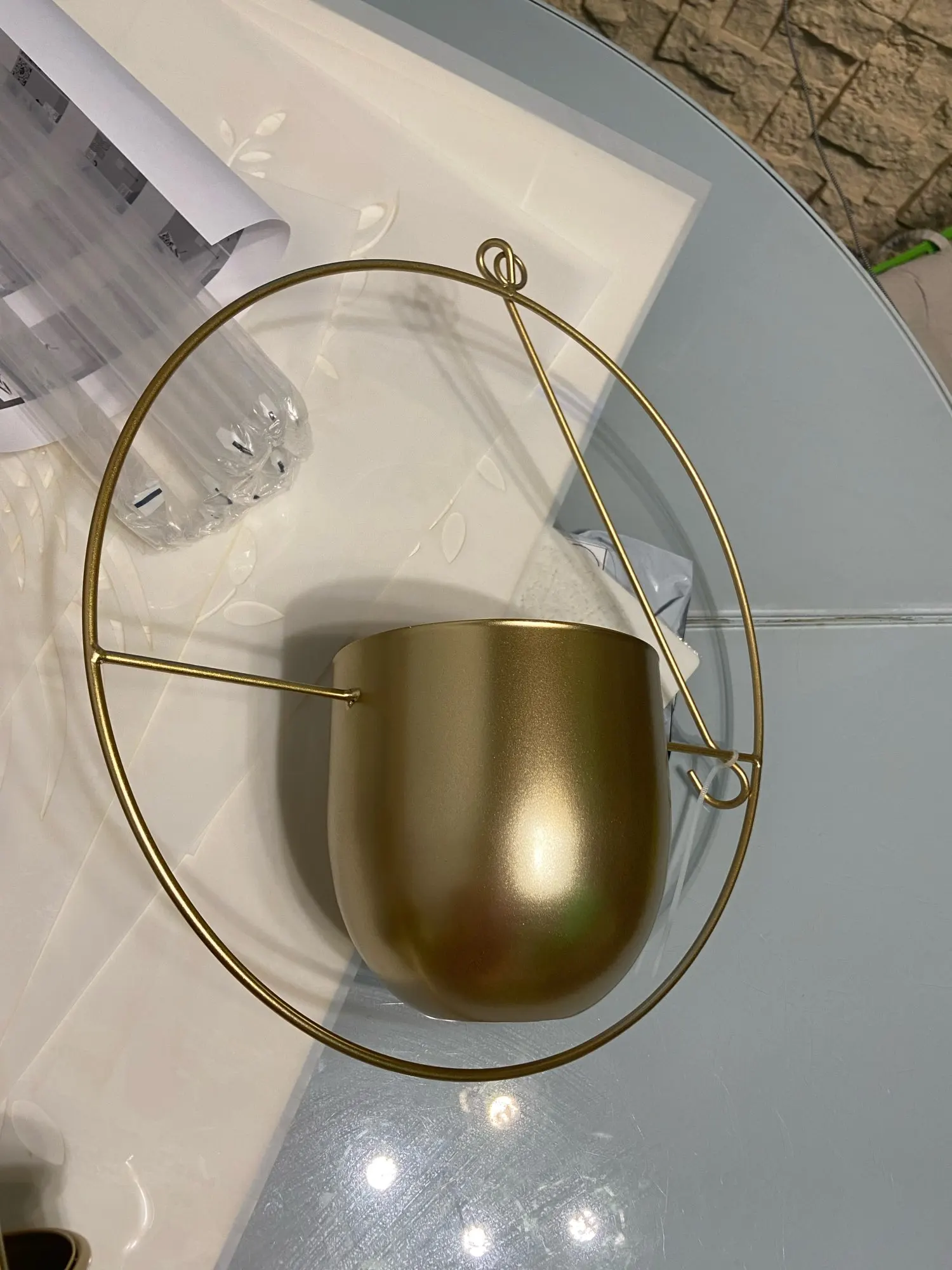 Особенности:-- Изготовлен из высококачественных материалов, подвесной Железный цветочный горшок прочный и безопасен в использовании.-Благодаря дизайну настенной Подвески Цветочный горшок является креативным и шикарным.-Цветочный горшок очень подходит для подвешивания в гостиной, спальне, ванной комнате, детской комнате, подоконнике или в помещении.-Это красивое домашнее украшение со стильным и красивым внешним видом.-- Вы можете купить его в качестве подарка вашим лучшим друзьям. И им очень понравится.Параметры:-- Название продукта: подвесной Железный цветочный горшок-Цвет: черный/золотой-- Материал: железо-- Размер: см. Подробную информацию-Вес нетто:Круглая: 540 гПродолговатая: 660 г-- Упаковочный лист:1 * цветочный горшокУпаковочный лист