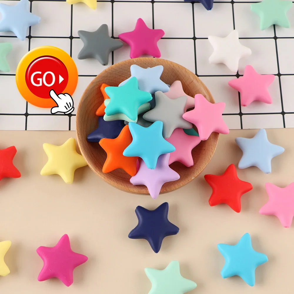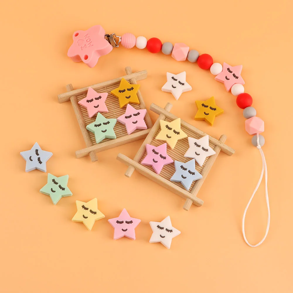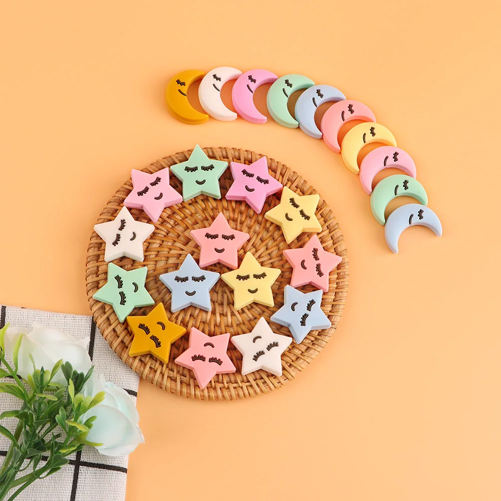 Kovict 10 шт. силиконовые бусины со звездами и луной, Силиконовые Прорезыватели для зубов DIY, аксессуары для соски и ожерелья, жевательные детские игрушки для кормления