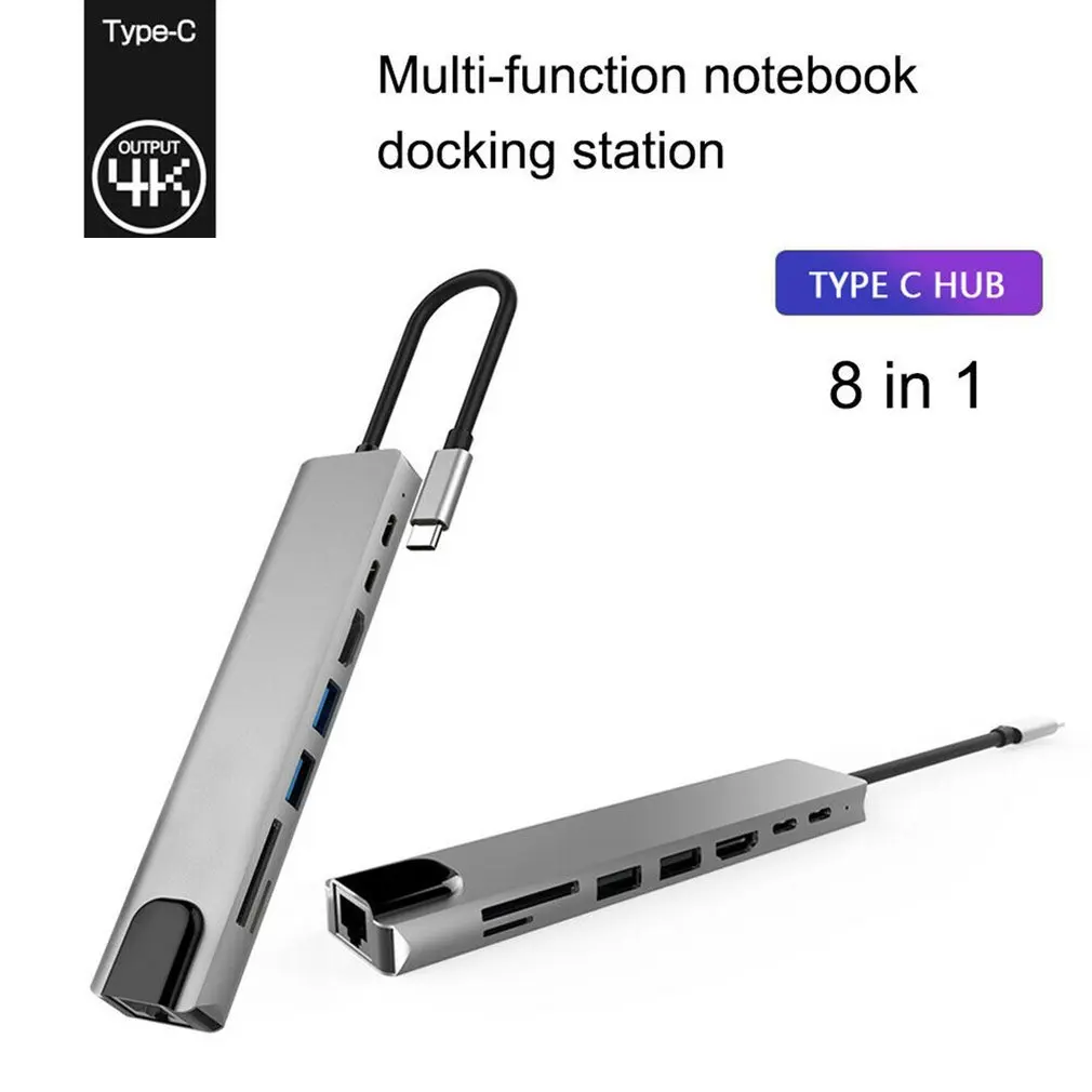 USB-концентратор 8-в-1 с портами USB Type-C на HDMI, RJ45