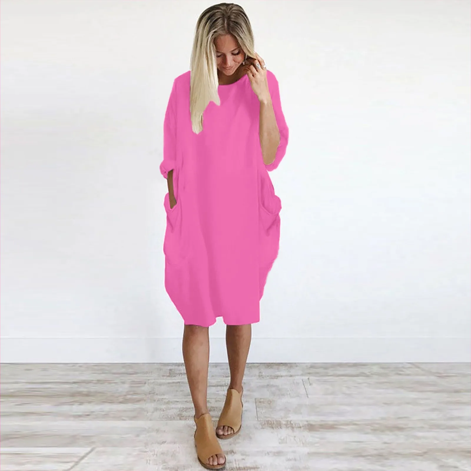 Летнее женское повседневное однотонное платье, элегантные платья с коротким рукавом и круглым вырезом для женщин, женская одежда, Vestidos Mujer Verano 2021