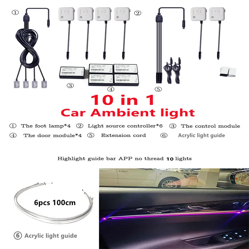Светодиодные ленты RGB без резьбы, управление с помощью приложения BluetoothИнтерьер автомобиля атмосферсветильник лампы 64 цвета DIY волоконно-оптический BandW/Ламсветильник для ногНазвание продукта: улучшенный внешний свет без резьбыХарактеристики продукта: соединение Bluetooth с управлением через приложение мобильный телефон,Управляйте напряжением продукта: 12 ВОсобенности продукта: Сортировка цвета/музыка/режим/таймер/встряхиваниеВ комплект входит: односторонняя, девятисветильник трубка, 9-метровая Двусторонняя лента ×16 изоляционных колпачков × 16 термоусадочных труб × светильник × 4Место установки: четыре двери + центральное управление + Подсветка