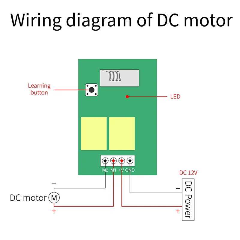 Рабочее напряжение: 12 В постоянного тока Ток покоя: <5 мА Максимальный ток: 10A Частота RF: 433 МГц Штырь: M1 \ M2 Рабочая температура: -30 ~ + 80 Чувствительность приема: >97dbm Количество пульта дистанционного управления: 25 шт. Поддержка кодирования: 1527 обучающий код/2262 фиксированный код Режим работы RF: ASK superгетеродинный беспроводной прием Диапазон приема: открытое пространство более 500 метров Удаленный режим работы: Мгновенный режим/режим переключения/режим блокировкиОбласть применения продукта Продукты могут быть использованы в домах, фермах, фабриках, офисах, лабораториях, супермаркетах и так далее. Гаражные ворота с дистанционным управлением \ электрические двери \ домашние двери \ двери затвора \ раздвижные двери \ ворота \ дорожные ворота Электрический занавес с дистанционным управлением \ водяной насос \ вентилятор \ лампа \ светодиодный светильник \ лампа \ вентиляционное устройство \ передача сигнала Мотор с дистанционным управлением положительное и отрицательное вращение переключатель двигателя сделай сам Если у вас есть какие-либо вопросы, пожалуйста, свяжитесь с нами. Посылка включает в себя Релейная плата ресивера (с корпусом) Пульт дистанционного управления (с батареей) Руководство по эксплуатации