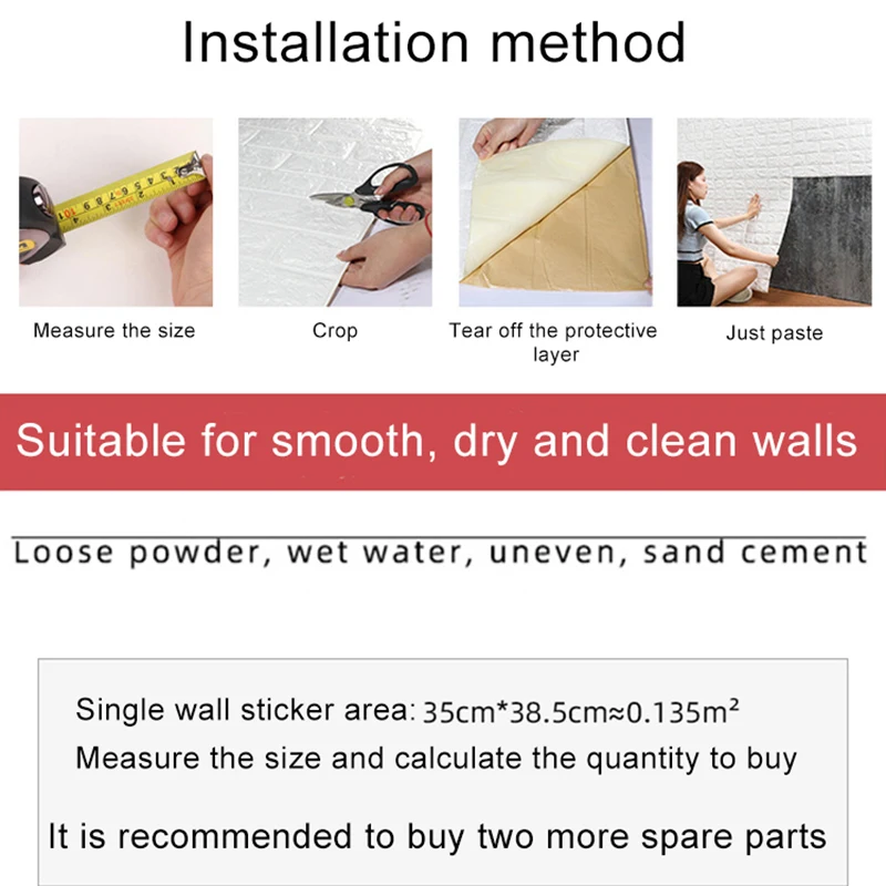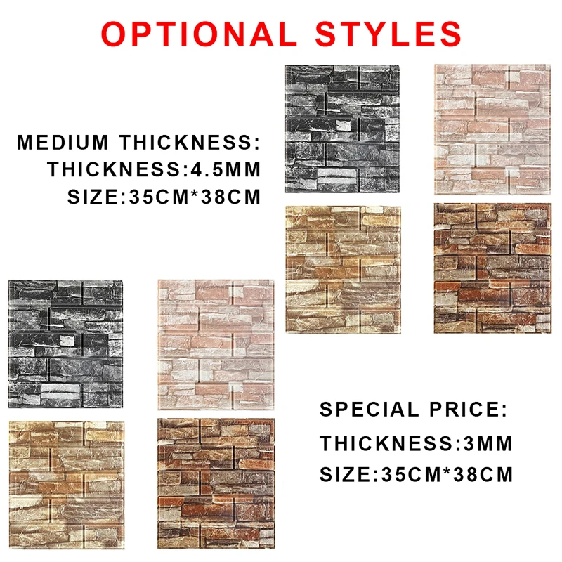 Особенности:** Самоклеющиеся и съемные: Снимите клейкую подложку и приклейте к любой сухой плоской поверхности. Никакого дополнительного клея или инструмента не требуется.** Легкое удаление: легко удаляется без повреждения поверхности, без остатков.** Мягкие поролоновые обои: это анти-столкновение, Мягкая Пена уменьшает шум, безопасность и защиту окружающей среды** Материал хорошего качества: изготовлен из высококачественной пены XPE, нетоксичный, без запаха, мягкий и гибкий.** 3D кирпичные обои: текстурированные 3D кирпичные обои являются хорошим украшением для вашей стены.** Легко чистить: можно чистить и обслуживать влажной тканью, это удобно для ежедневного использования.** DIY: легко резать и обрезать в соответствии с вашими различными потребностями установки.** Применимые поверхности: подходят для гладкой, чистой, жаркой и плоских поверхностей, таких как пластик, стекло, дерево и многое другое.** Многофункциональность: кирпичные обои можно безопасно установить в любую комнату, например, в гостиную, спальню, детские комнаты, кухонные стены, офис и т. д., чтобы создать индивидуальный внешний вид.**Простота установки:1. Измерьте стену, чтобы получить подробные размеры перед резкой.2. Сначала очистите пыль.3. Обрежьте подходящий размер в соответствии с декоративной областью.4. Очистите заднюю бумажную наклейку, затем Наклейте на плоскую поверхность.5. Нажмите на панель, чтобы убедиться, что она правильно прилипает к стене.